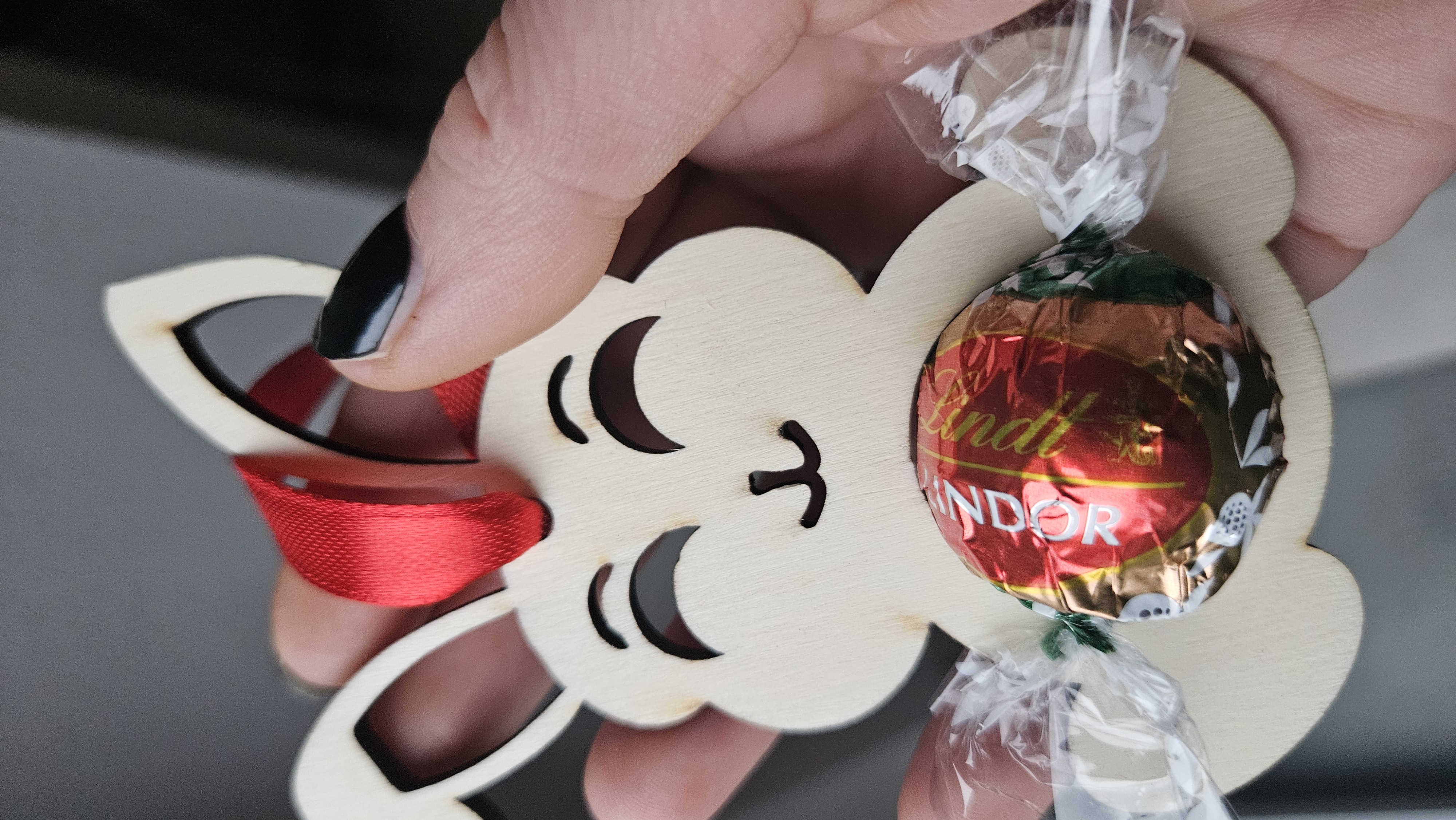 Clou: Die Aussparung im Bauch ist perfekt auf eine Lindor-Kugel (oder ähnliche Schokokugeln) zugeschnitten.