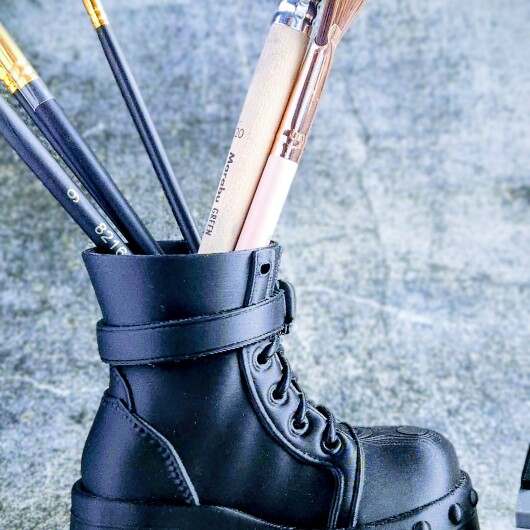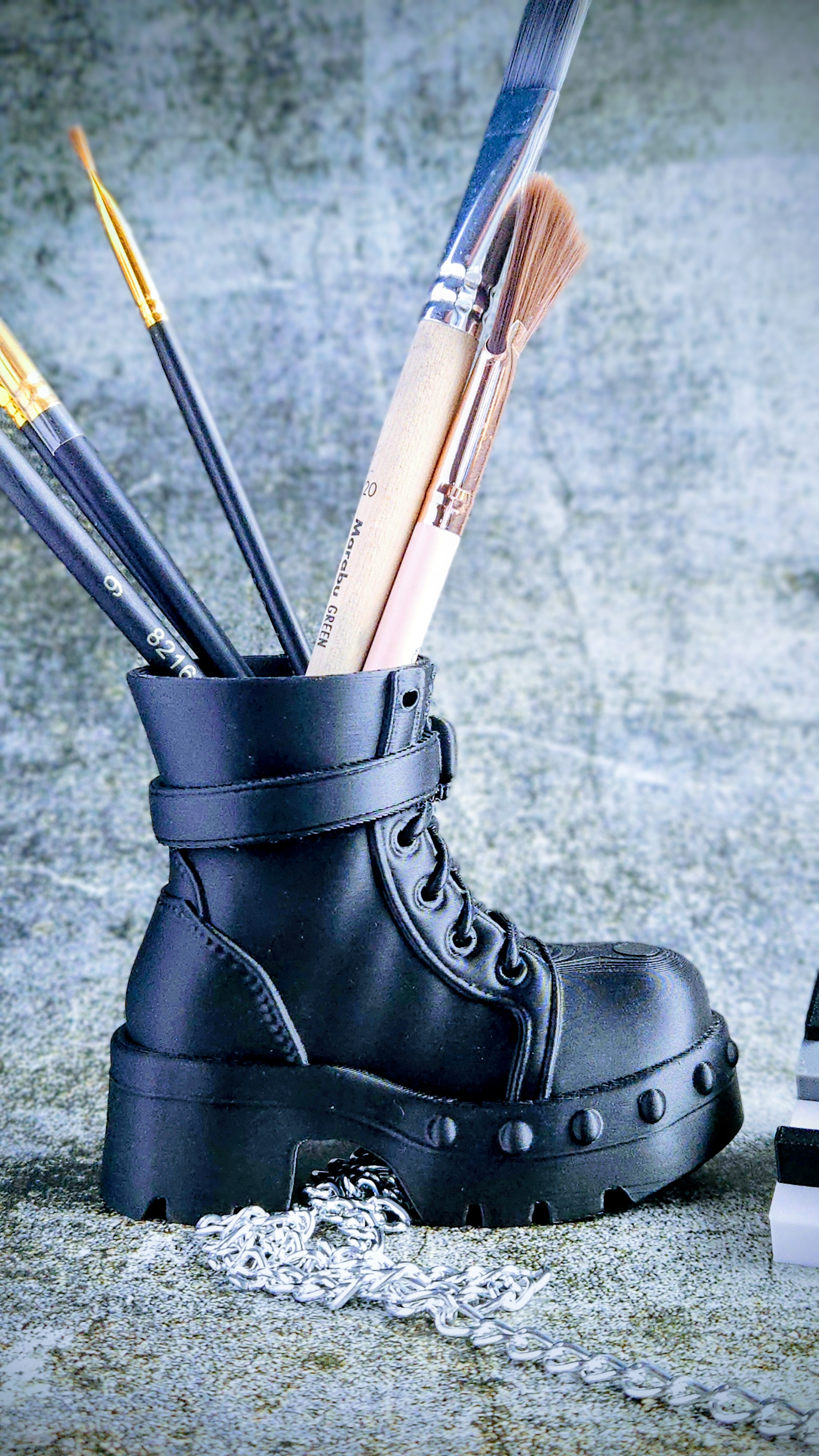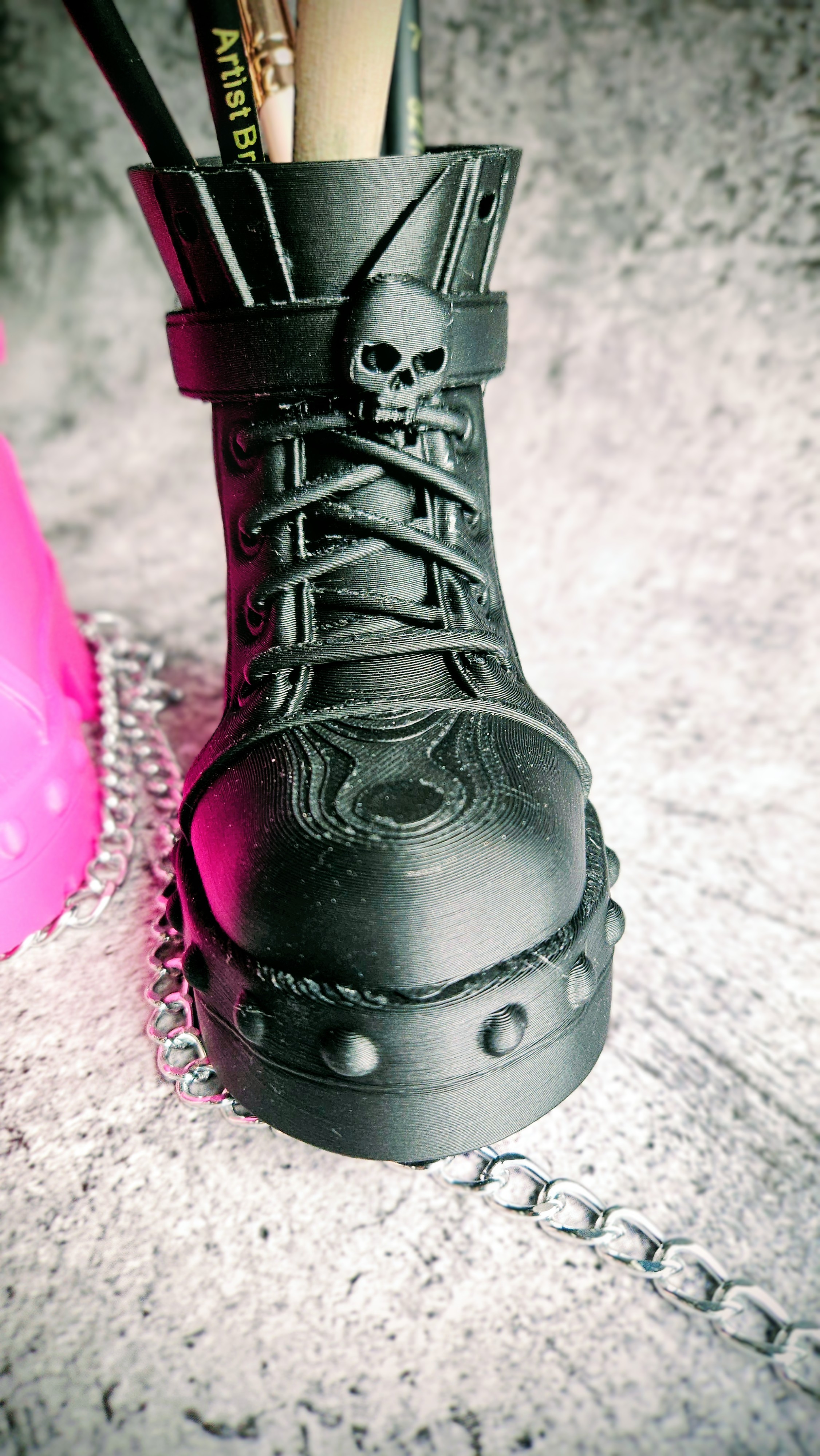 Gothic Boot Stiftehalter – 3D-gedruckter Pinselhalter mit Totenkopf-Detail
