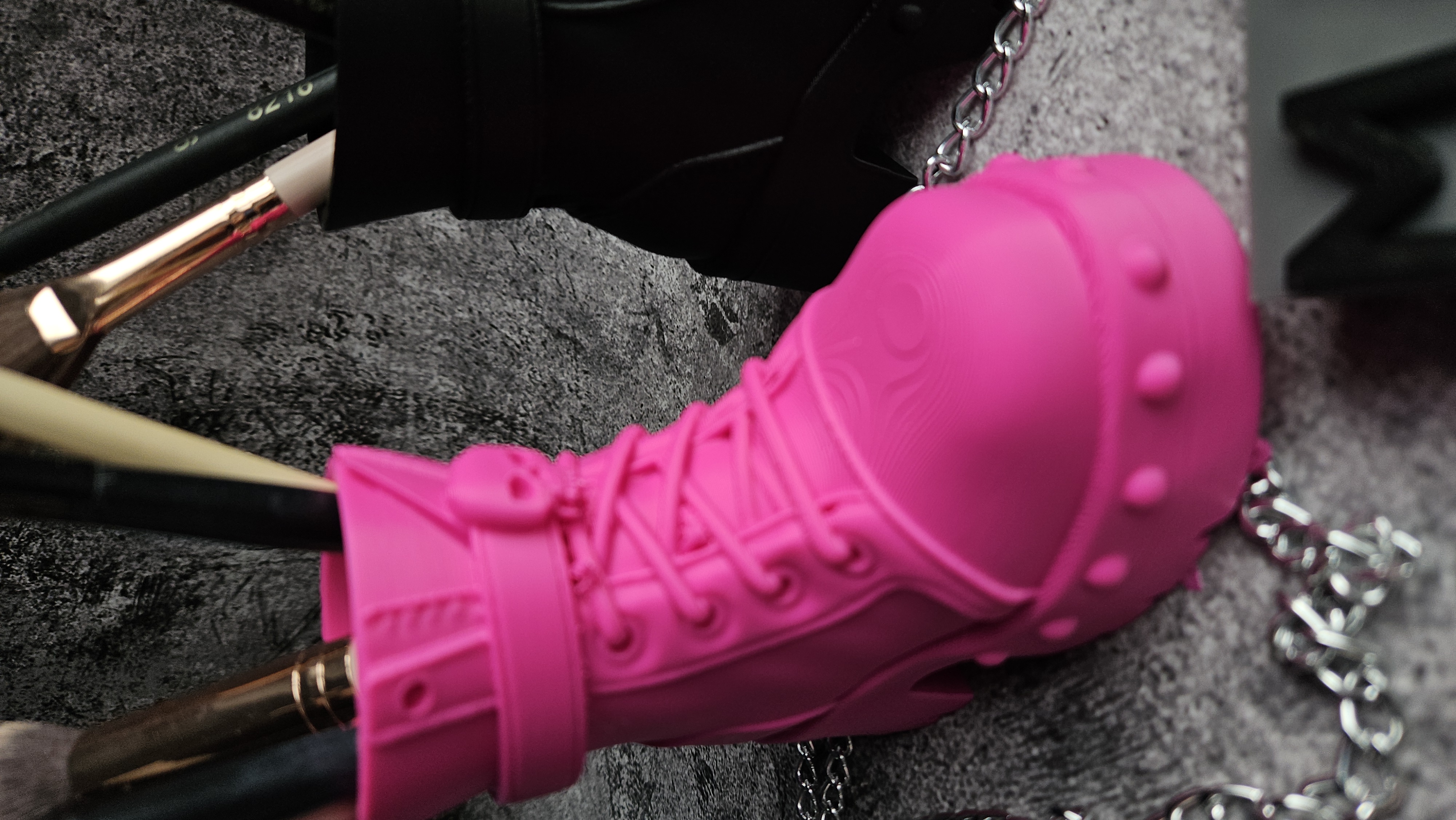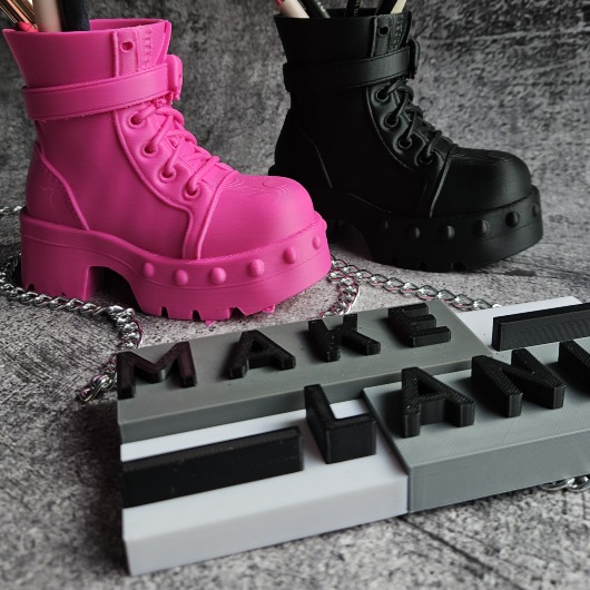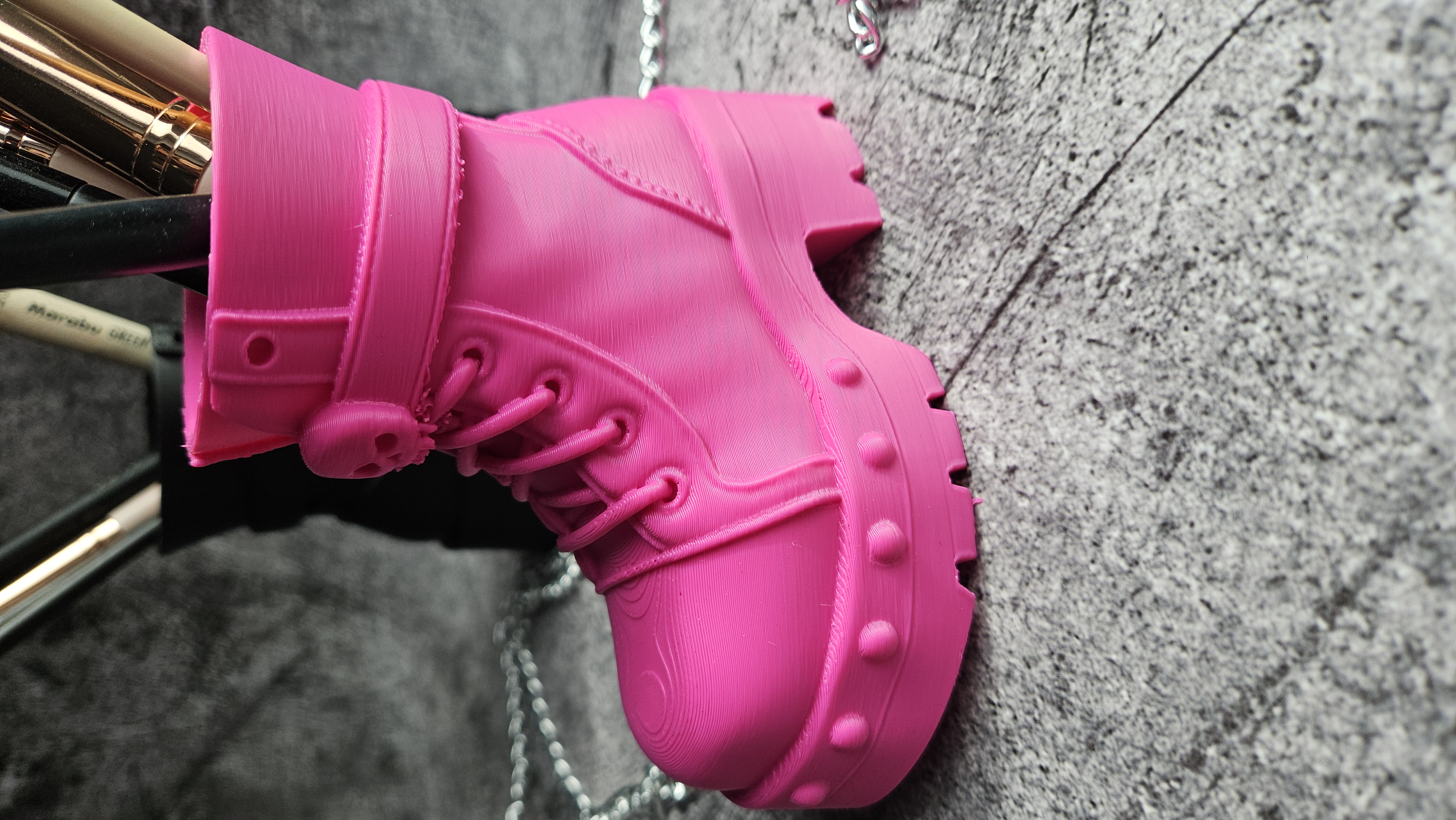 Dieser Plateau-Boot ist kein gewöhnlicher Stiftehalter. Er ist ein Statement. Im 3D-Druckverfahren aus PLA gefertigt, kombiniert er Dark Aesthetic mit echter Alltagsfunktion: Stifte, Pinsel, Make-up-Brushes oder Künstlerbedarf finden hier ihren Platz – und zwar mit Stil.