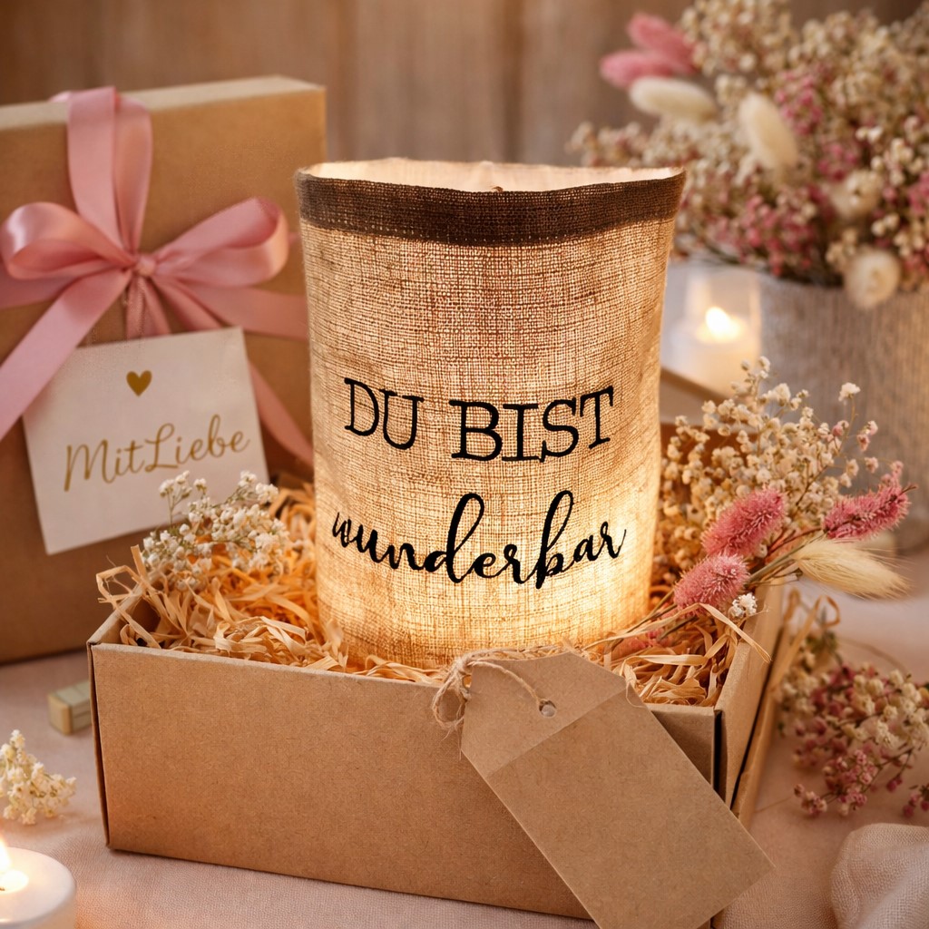 Glück ist… wenn deine Patentante dieses Windlicht auspackt und sofort strahlt: kleine Geste, große Freude – und ein Deko-Highlight fürs Zuhause.