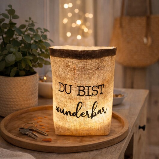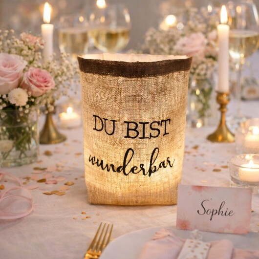 besticktes WINDLICHT "DU BIST WUNDERBAR" //Leinen natur// Lichtbeutel, Kerzenglas, Deko, Laterne, Geschenk, Kompliment, Danke, Party