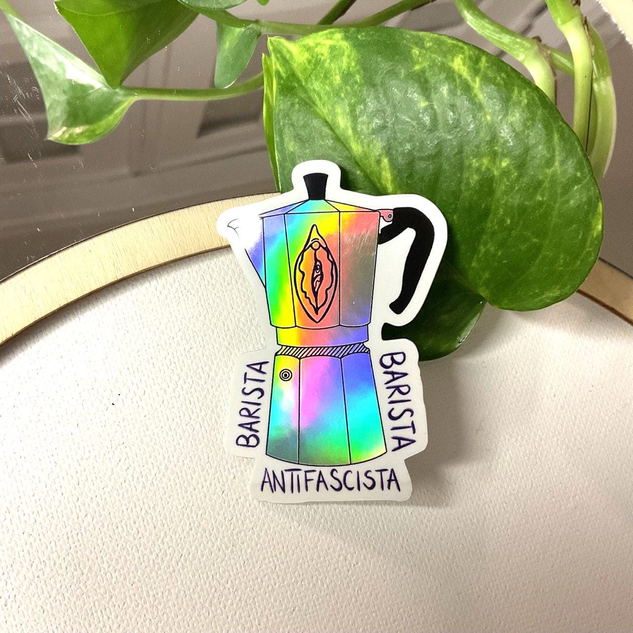 Holo Barista Vulva Sticker | Holografischer Aufkleber
