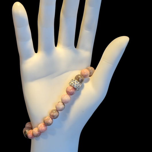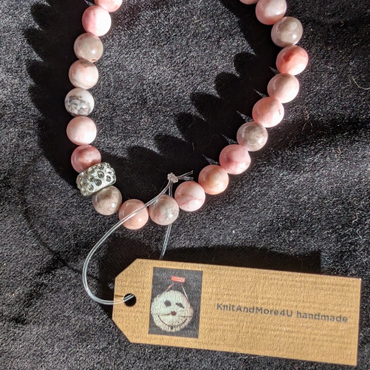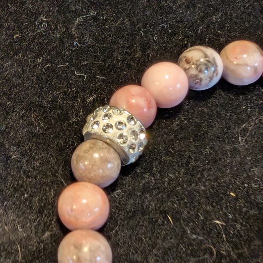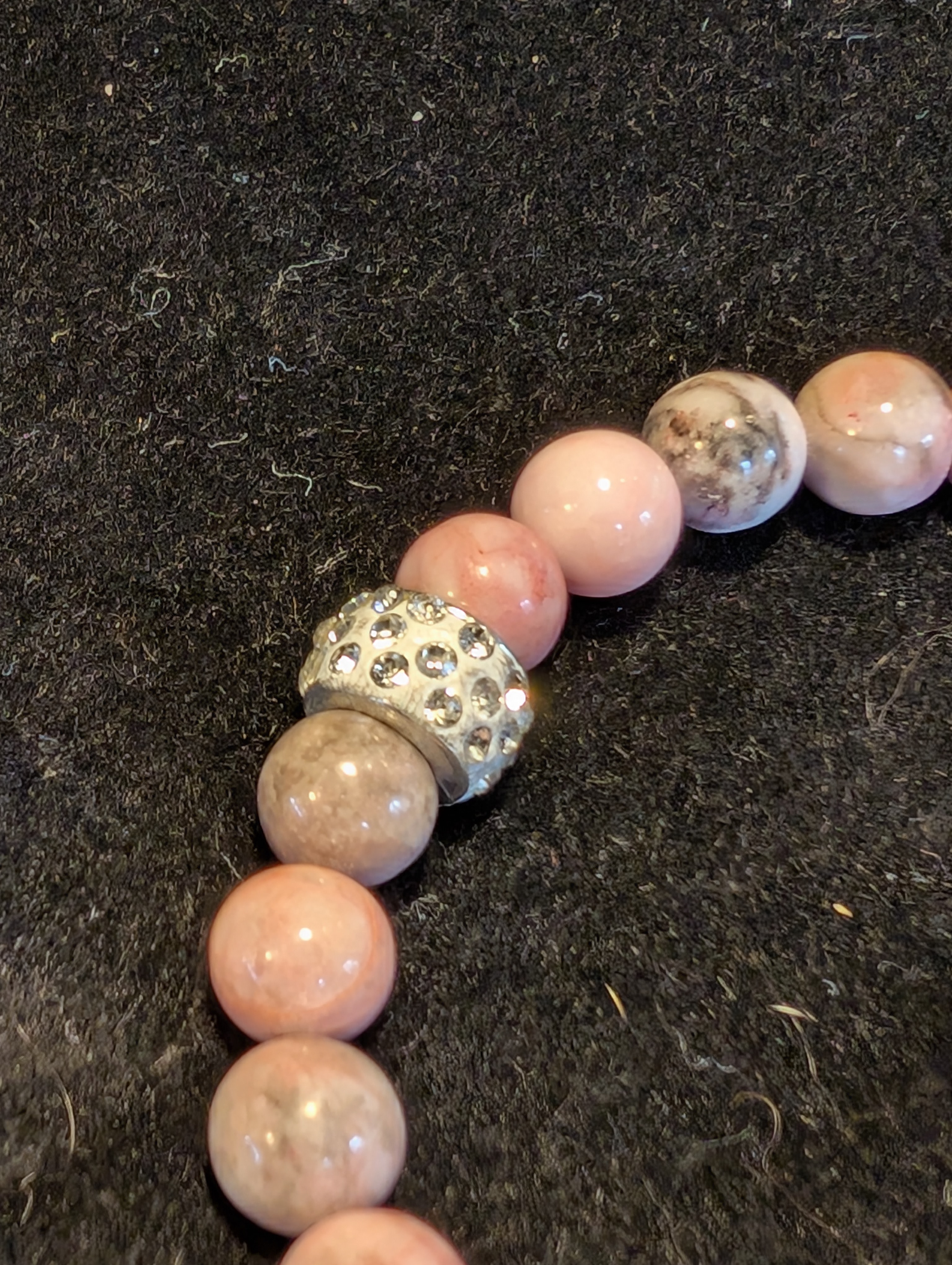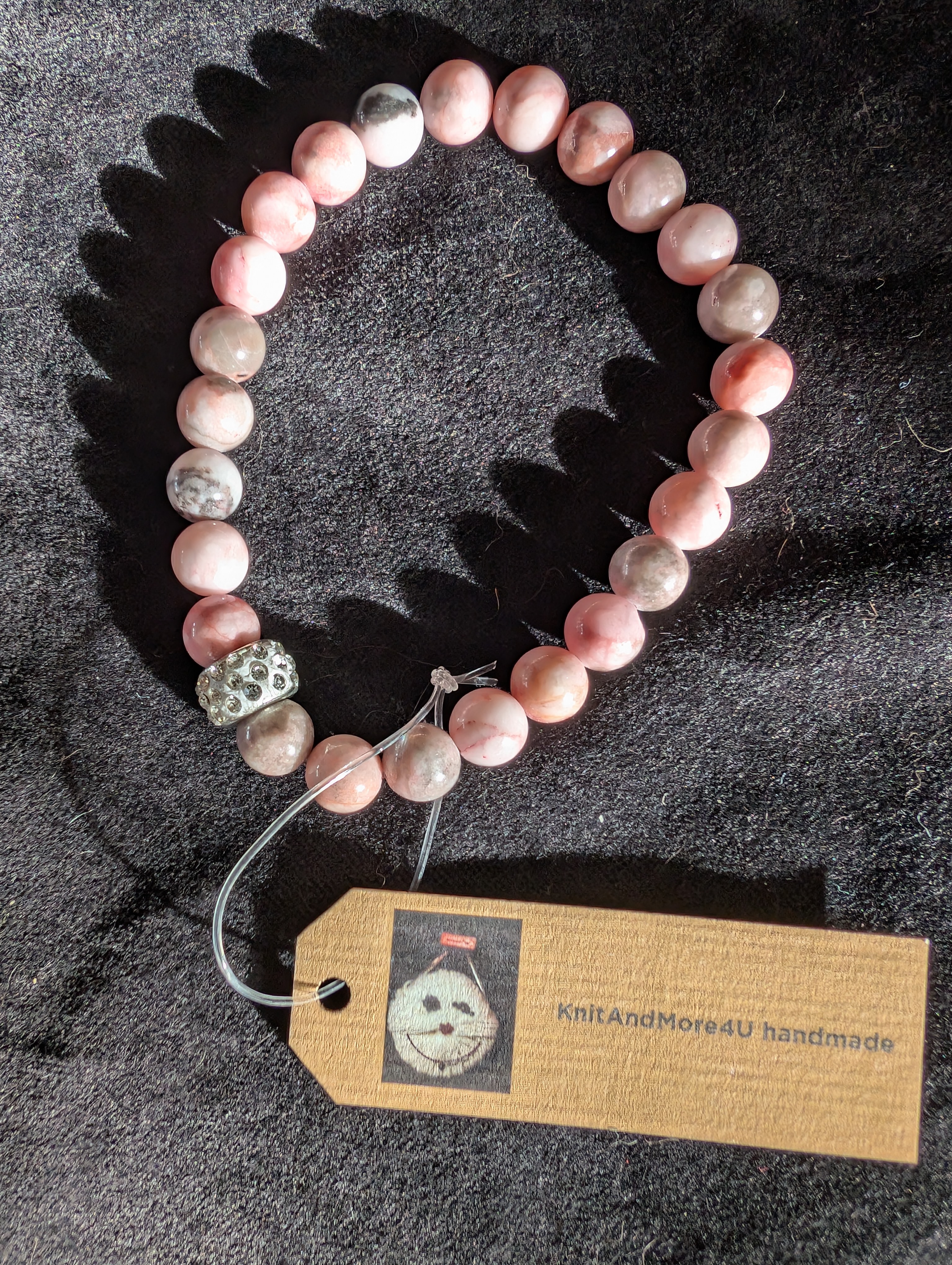 Armband aus Jade Natursteinperlen "Pink Zebra", als Schlüsselstein eine Strass Perle