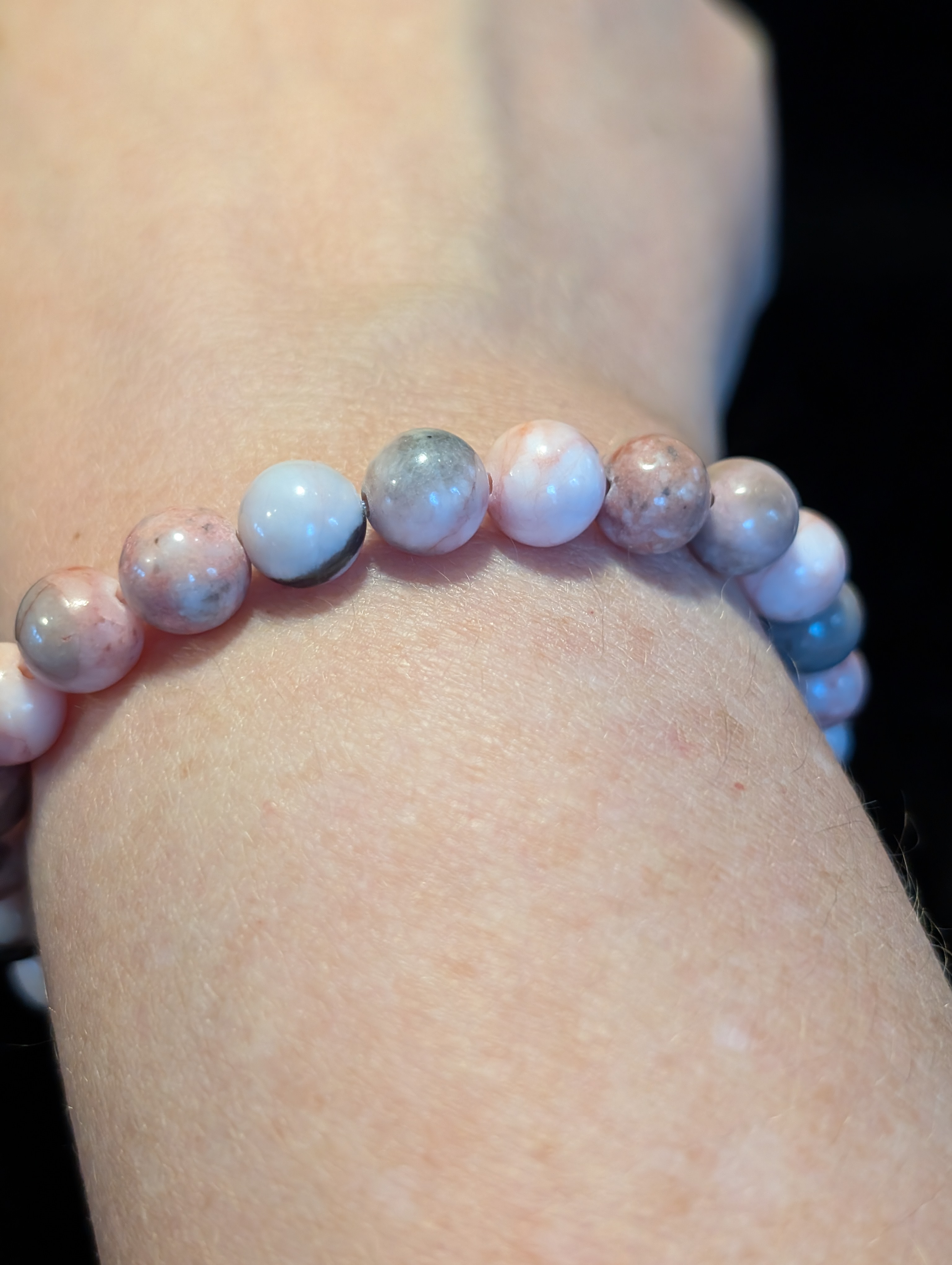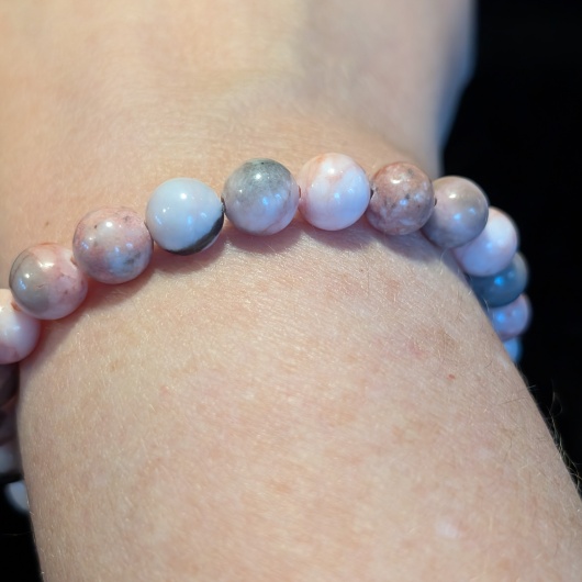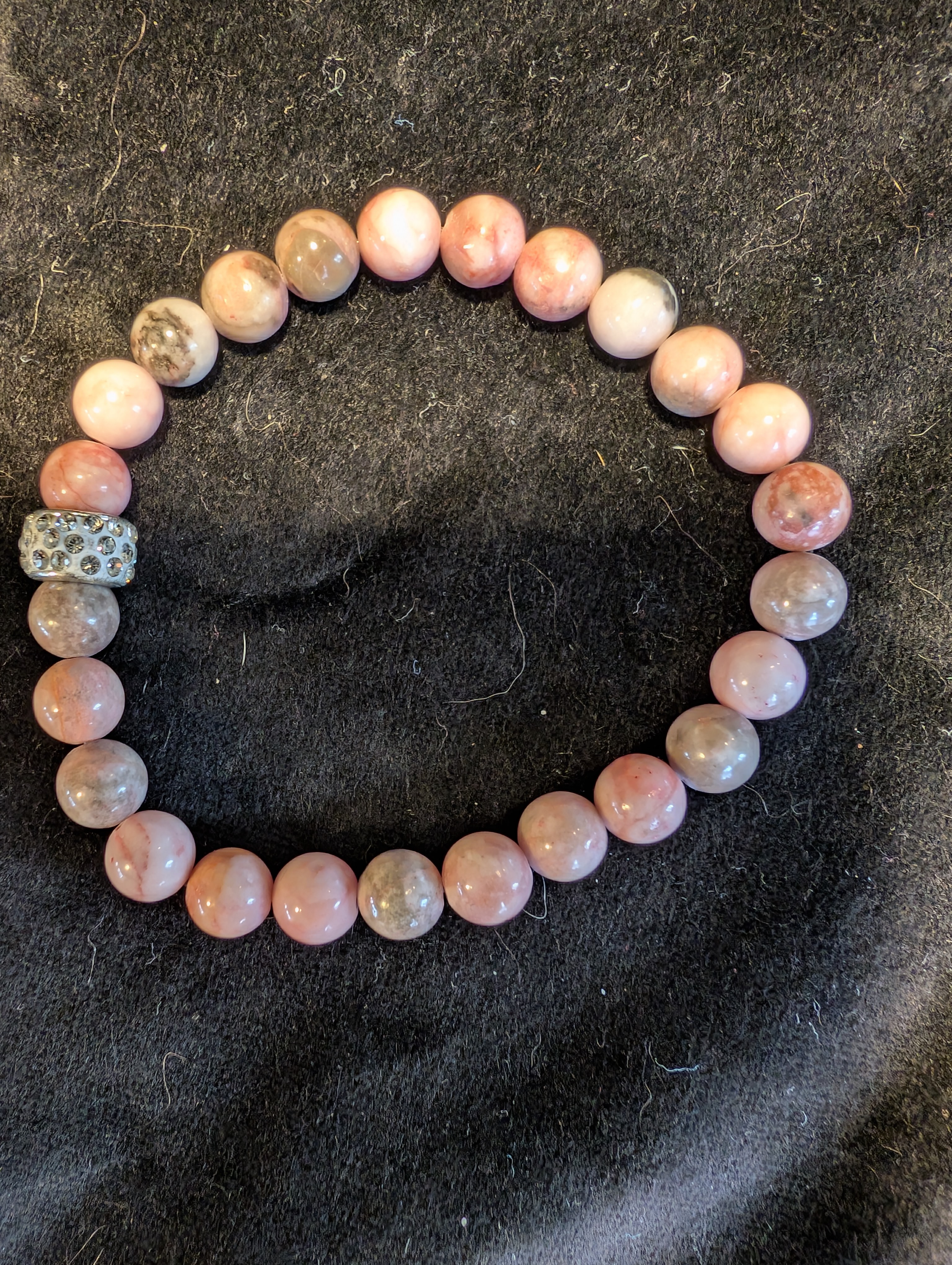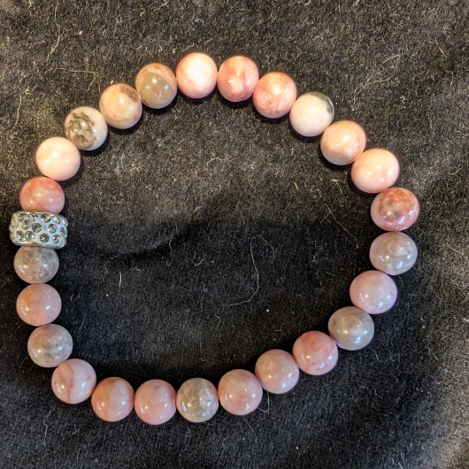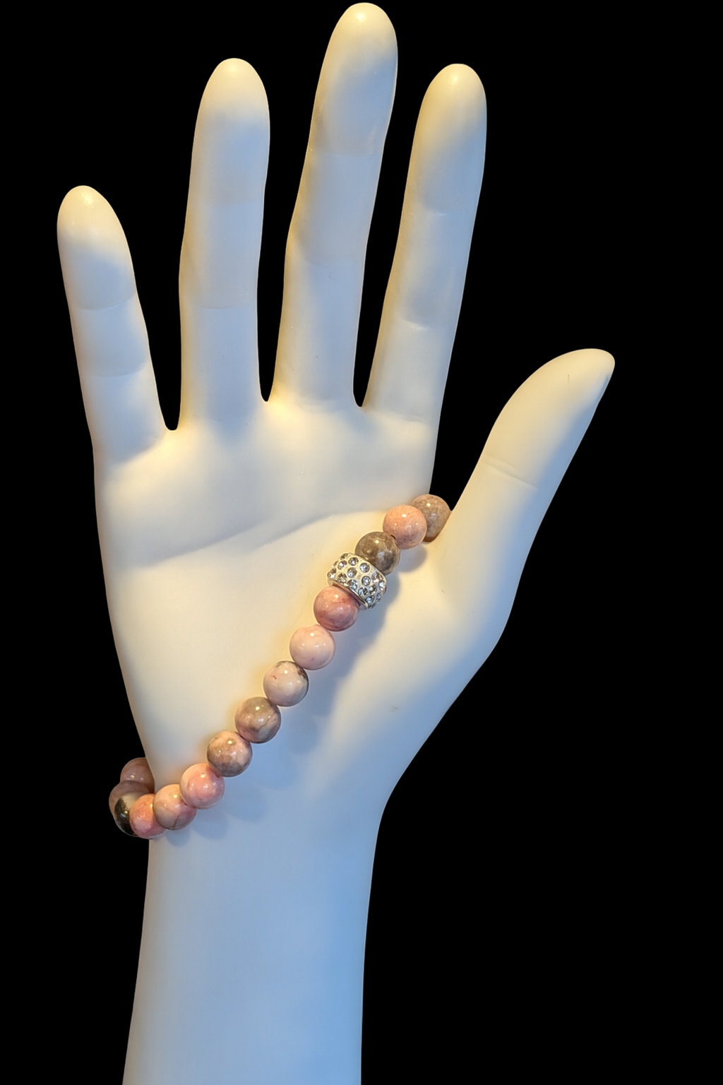 Armband aus Jade Natursteinperlen "Pink Zebra", als Schlüsselstein eine Strass Perle