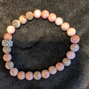 Armband aus Jade Natursteinperlen "Pink Zebra", als Schlüsselstein eine Strass Perle Handgefertigtes Einzelstück in Größe M, Umfang ca. 20cm