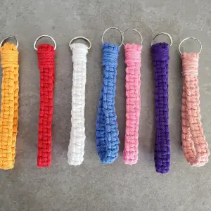 Diese Schlüsselanhänger werden aus macramee Garn geflochten.Sie sind ca 15cm lang (variiert leicht und die Haken sind verschieden) Perfekt für ein kleines Mitbringsel für den Einzug oder an einen Rucksack