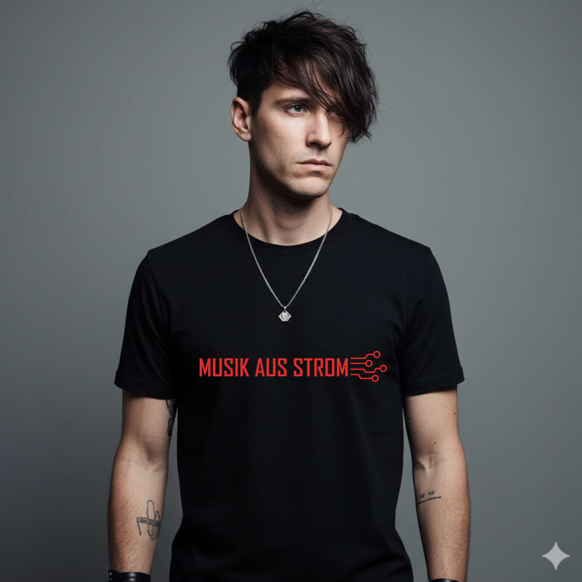 Dieses schwarze Shirt mit knallroter Aufschrift „Musik aus Strom“ ist die perfekte Wahl für alle, die elektronische Klänge nicht nur hören, sondern leben. Das Design ist eine klare Hommage an die Ästhetik der Elektroszene – minimalistisch, kontraststark und absolut wiedererkennbar.