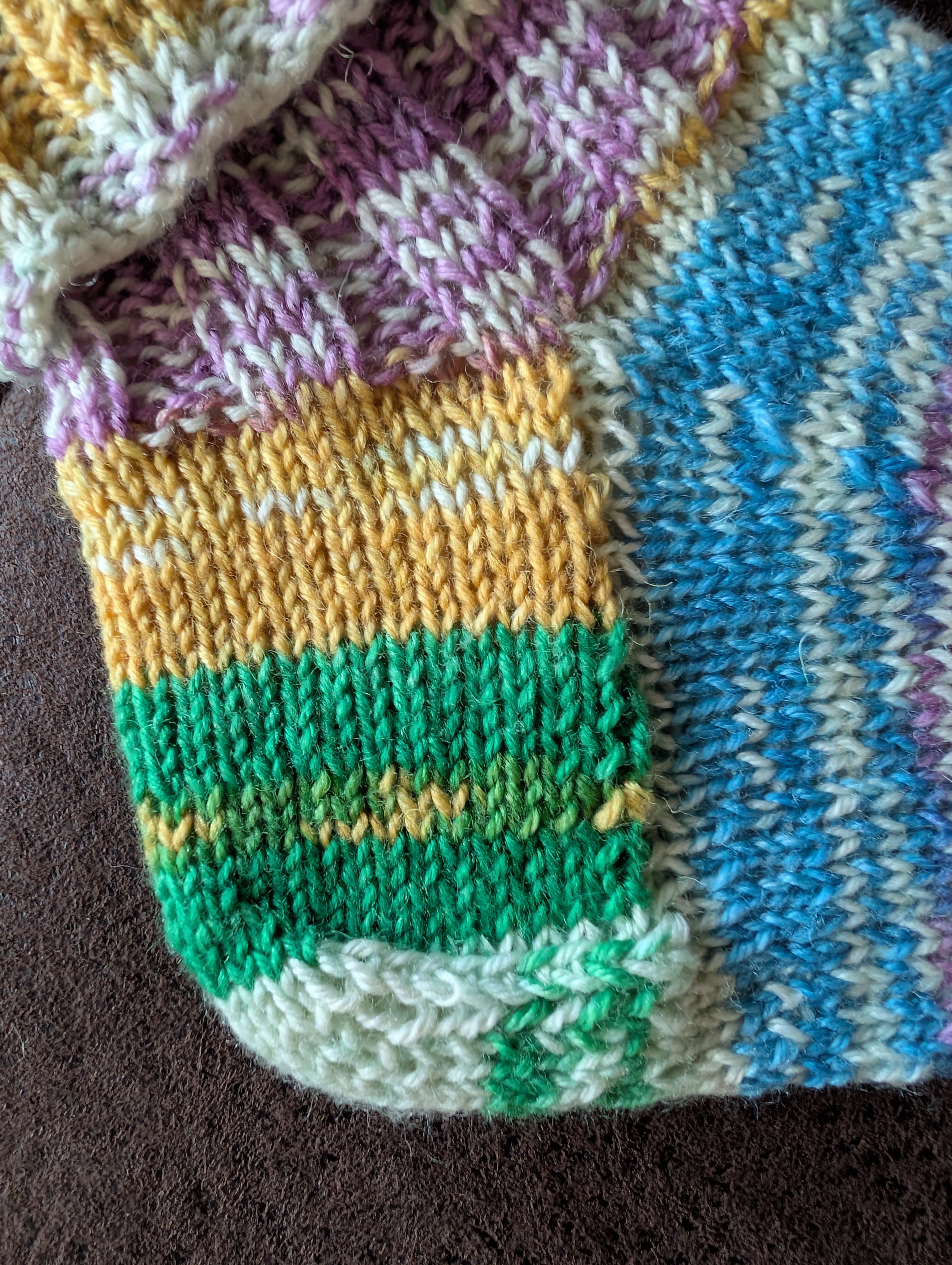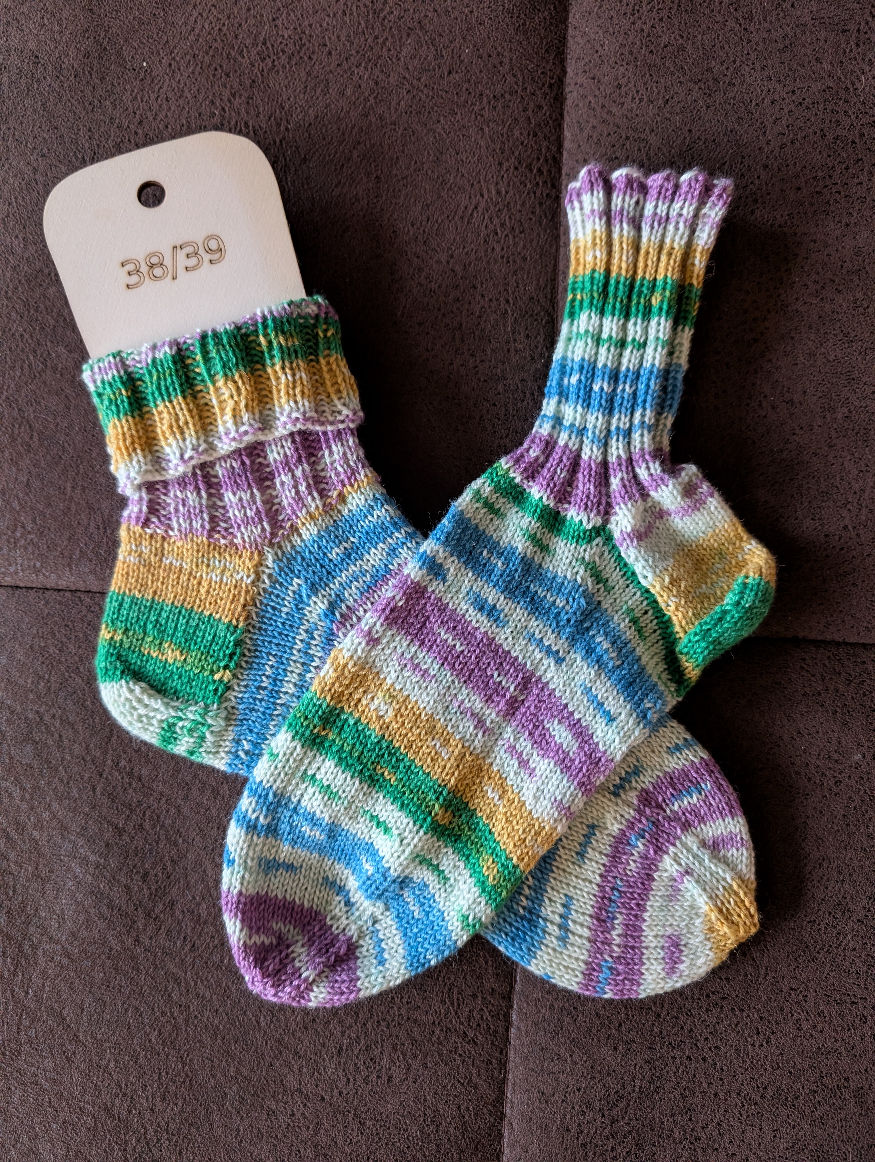 Diese liebevoll handgestrickten Socken in Größe 38/39 vereinen Komfort, Qualität und farbenfrohes Design. Das Garn besteht aus 55% Schurwolle, 20% Seide und 25% Polyamid – eine hochwertige Mischung, die für angenehme Wärme, weichen Griff und lange Haltbarkeit sorgt.