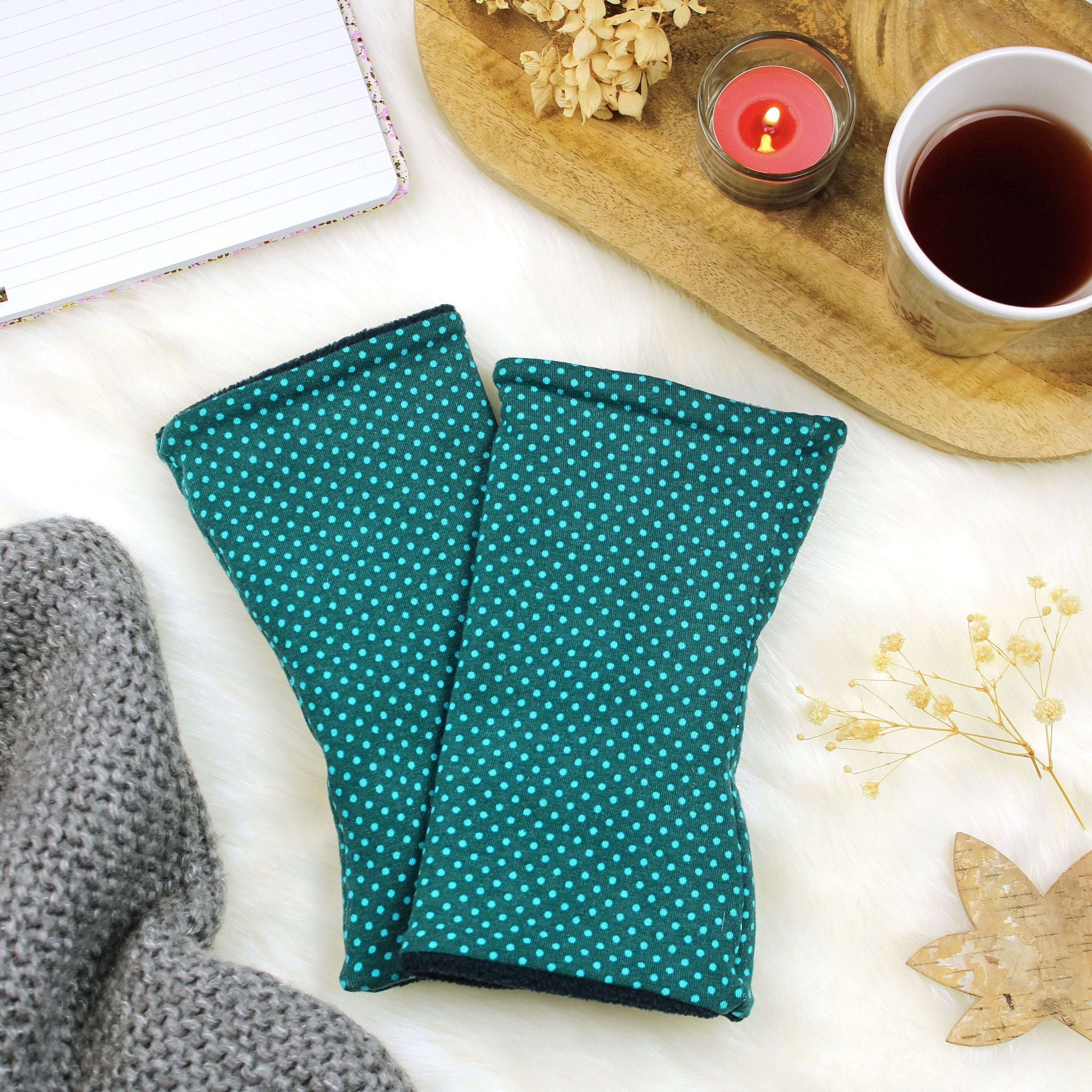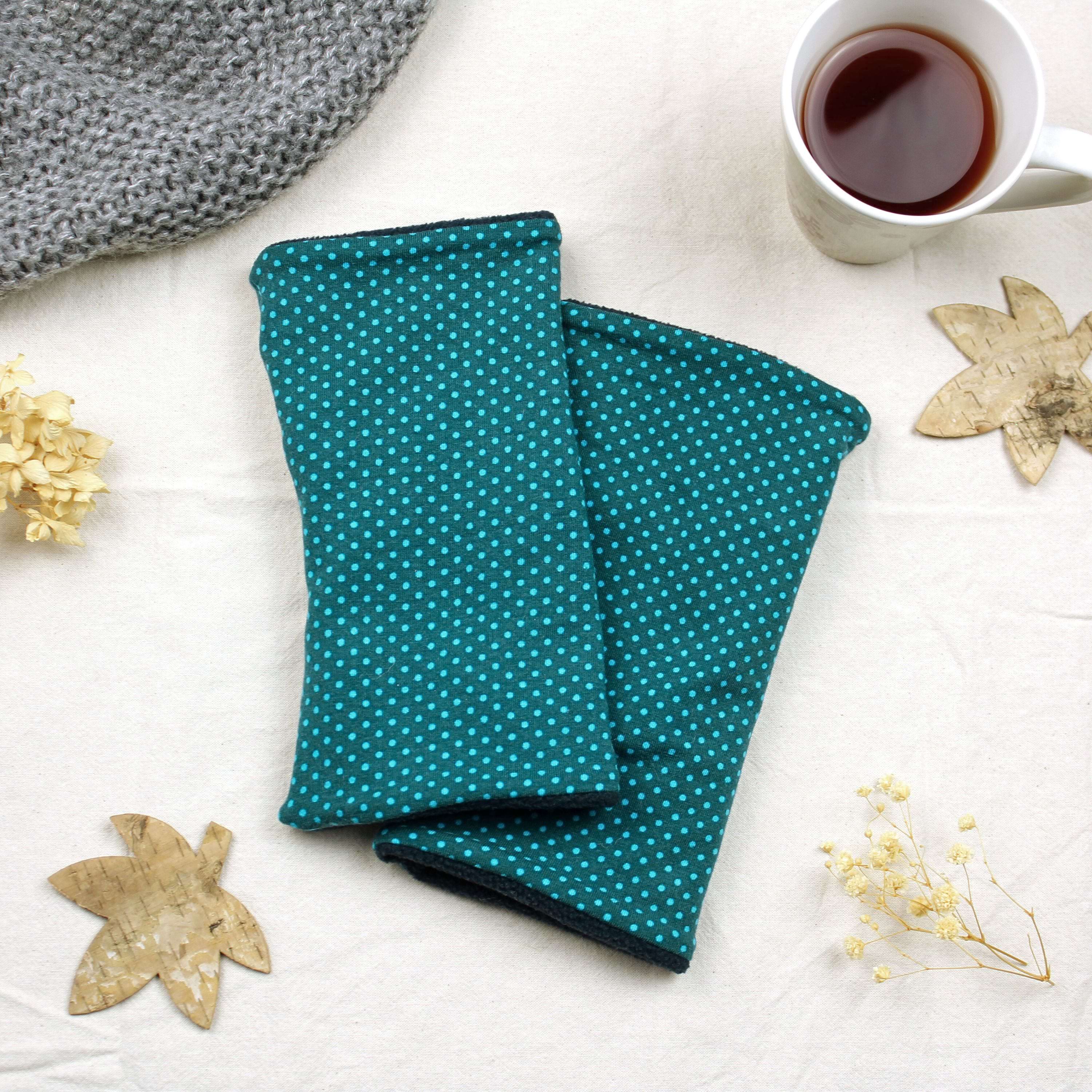 Armstulpen in Petrol mit Punkten – handgemacht, weich gefüttert & bequem