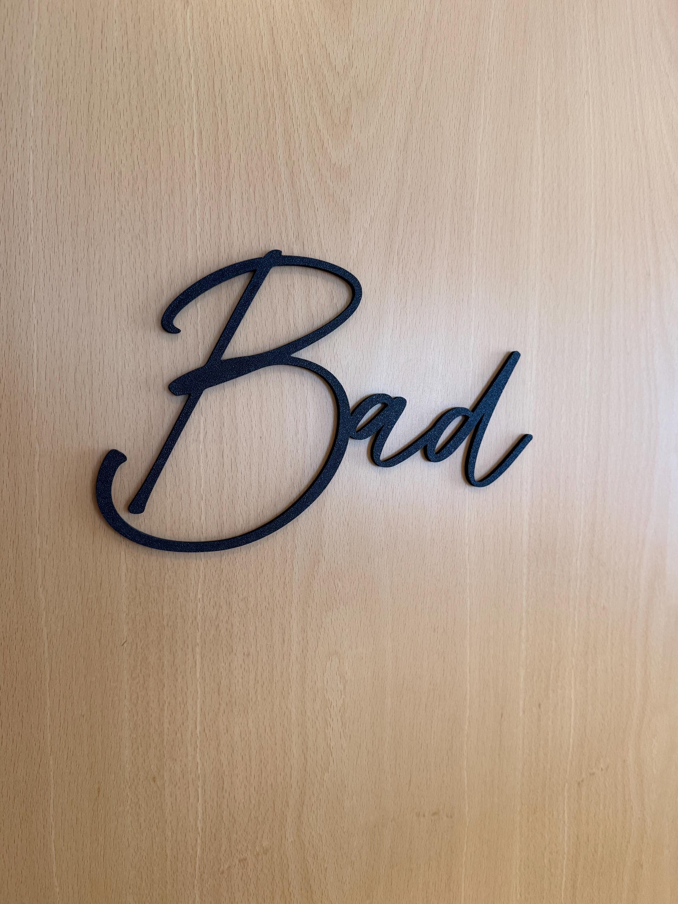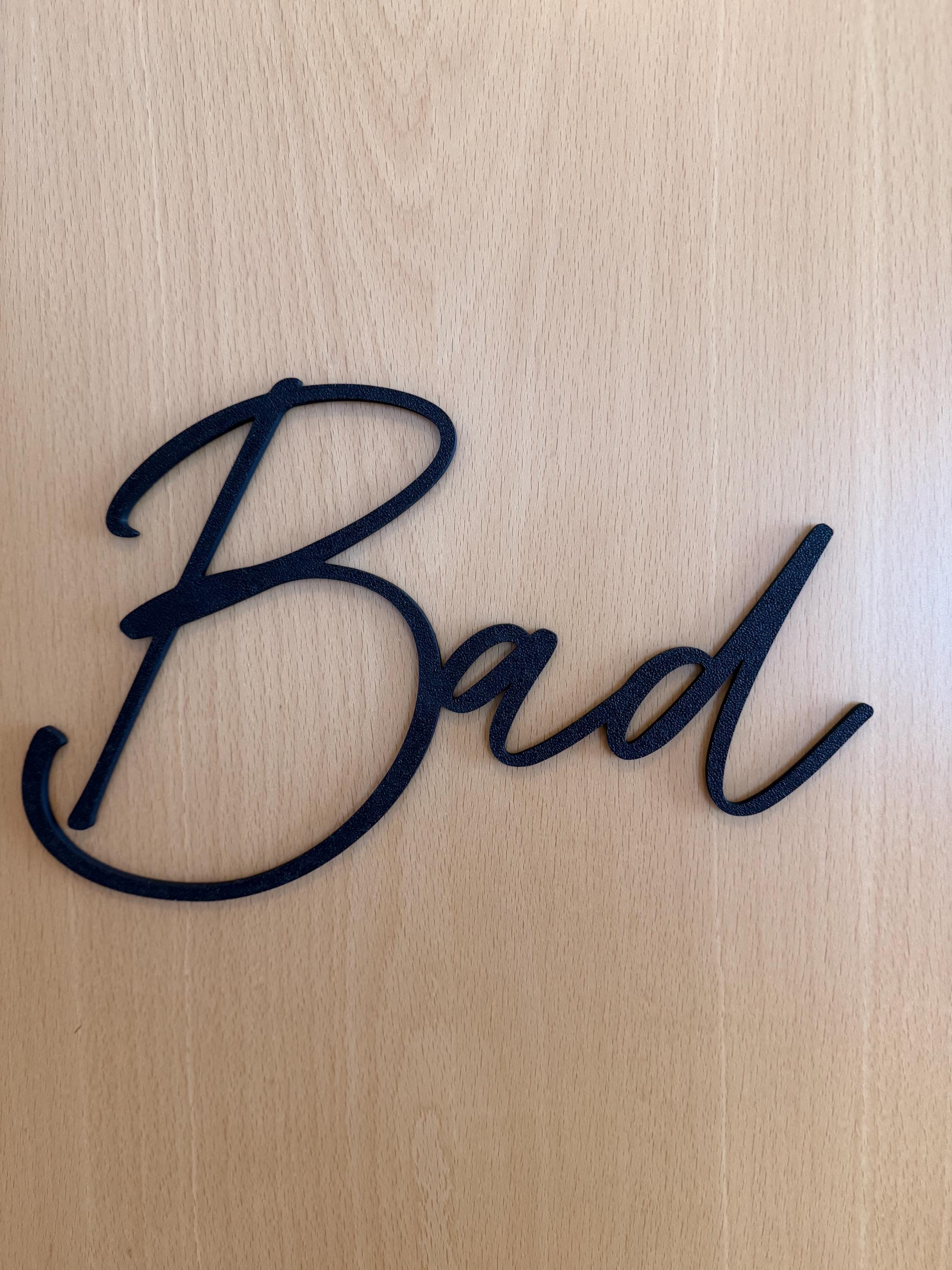 Bringe Stil und Klarheit in dein Zuhause mit diesem eleganten 3D gedruckten „Bad“-Schriftzug. Das minimalistische Design in Schwarz wirkt modern und zeitlos – ideal für Badezimmer, Gäste-Bäder oder Spa-Bereiche.