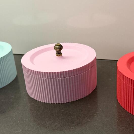 Diese handgefertigte Schmuckdose ist ein echter Hingucker und zugleich die perfekte Aufbewahrungslösung für deine Lieblingsschätze. Mit ihrem modernen Design, den feinen Rillen und dem dekorativen Knauf vereint sie Funktionalität und Eleganz.