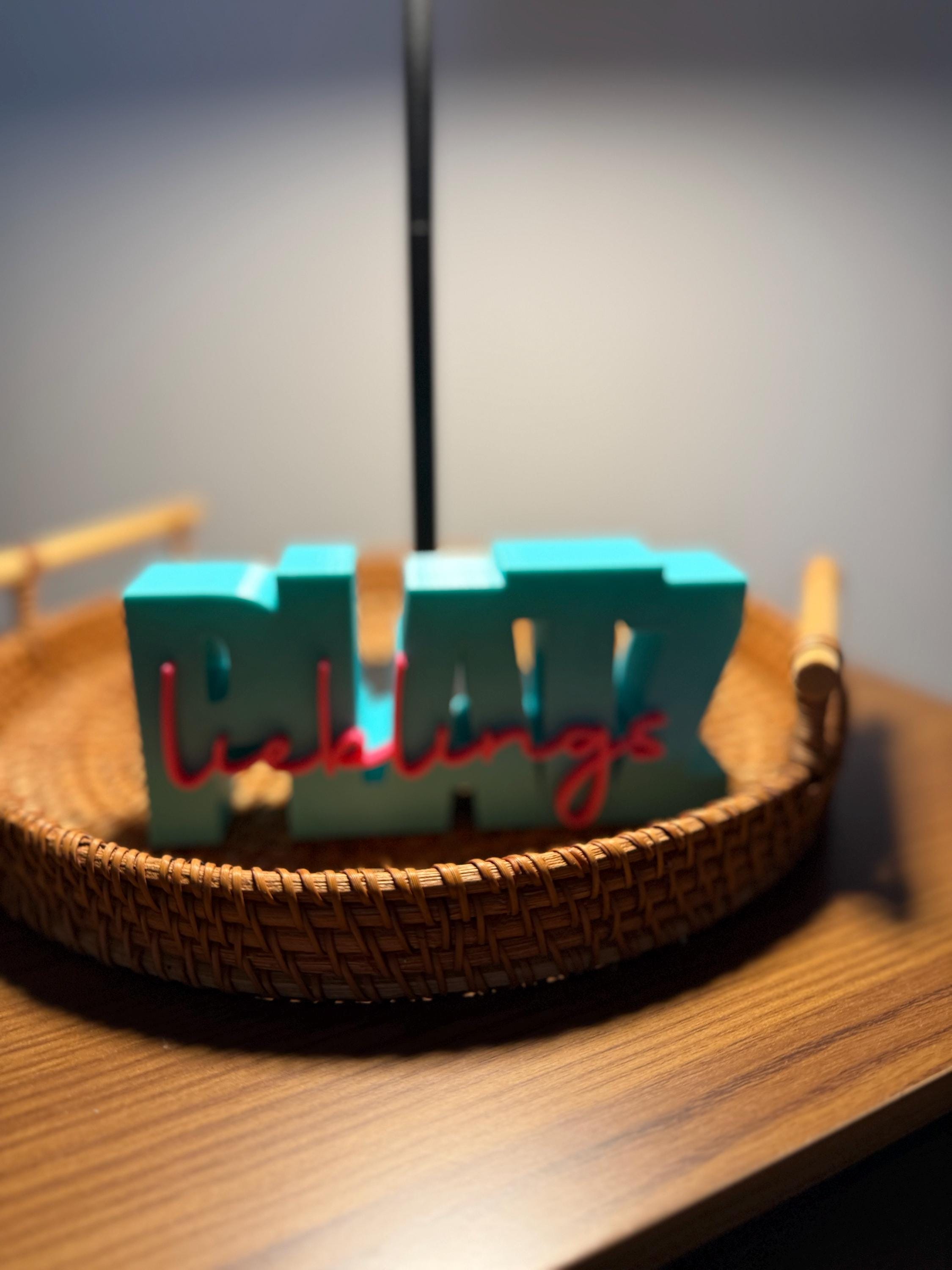 Gestalten Sie Ihr Zuhause mit unserem farbenfrohen, 3D-gedruckten Schriftzug "Lieblingsplatz"! Dieses charmante Dekorationsstück ist eine perfekte Ergänzung für jeden Raum und bringt eine persönliche Note in Ihre Einrichtung.