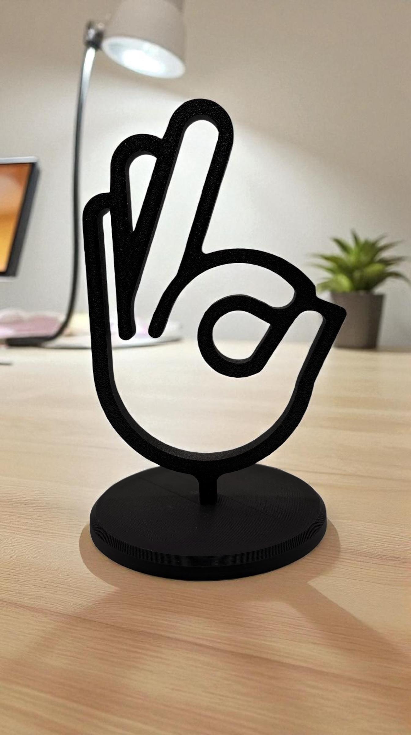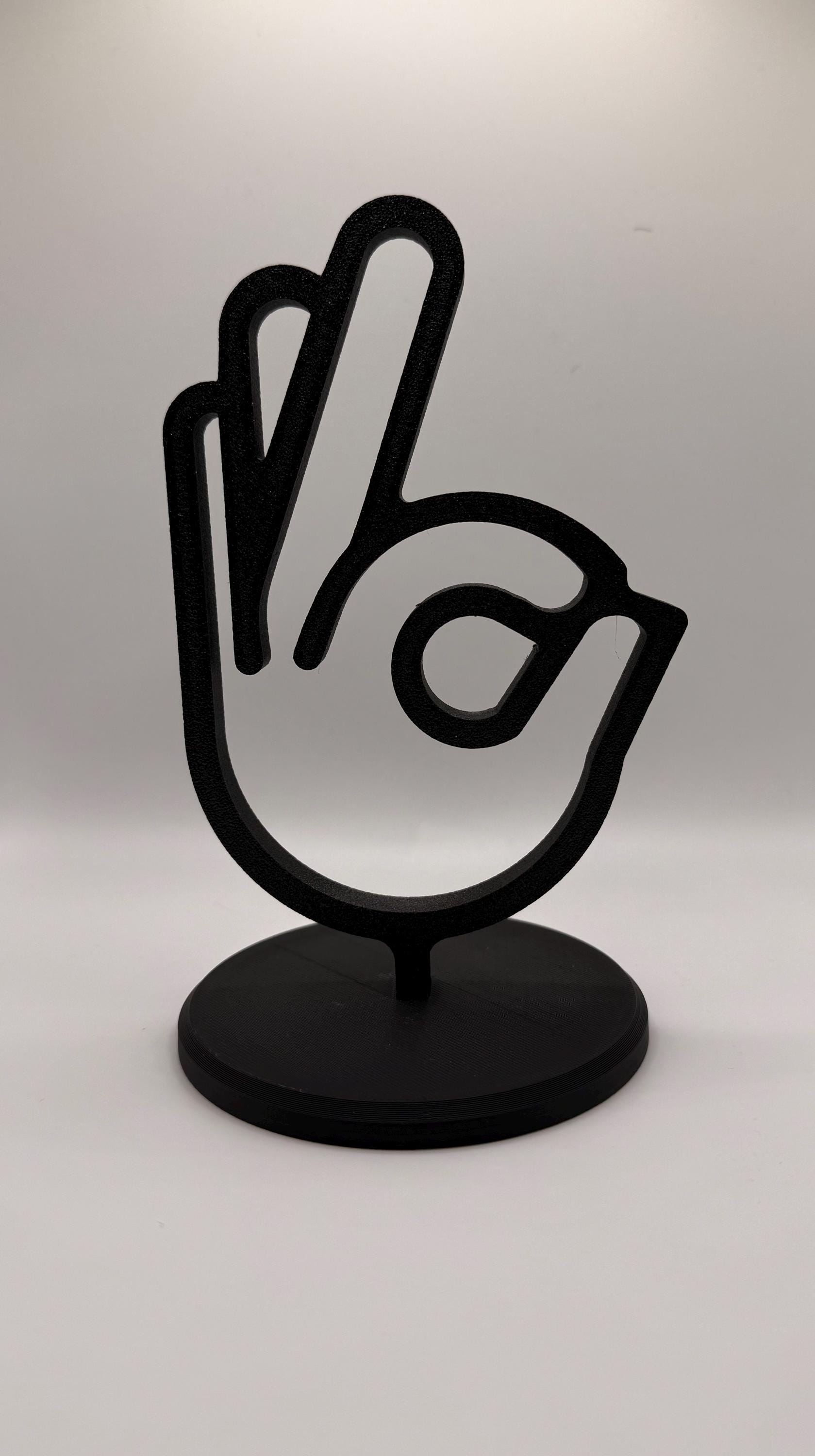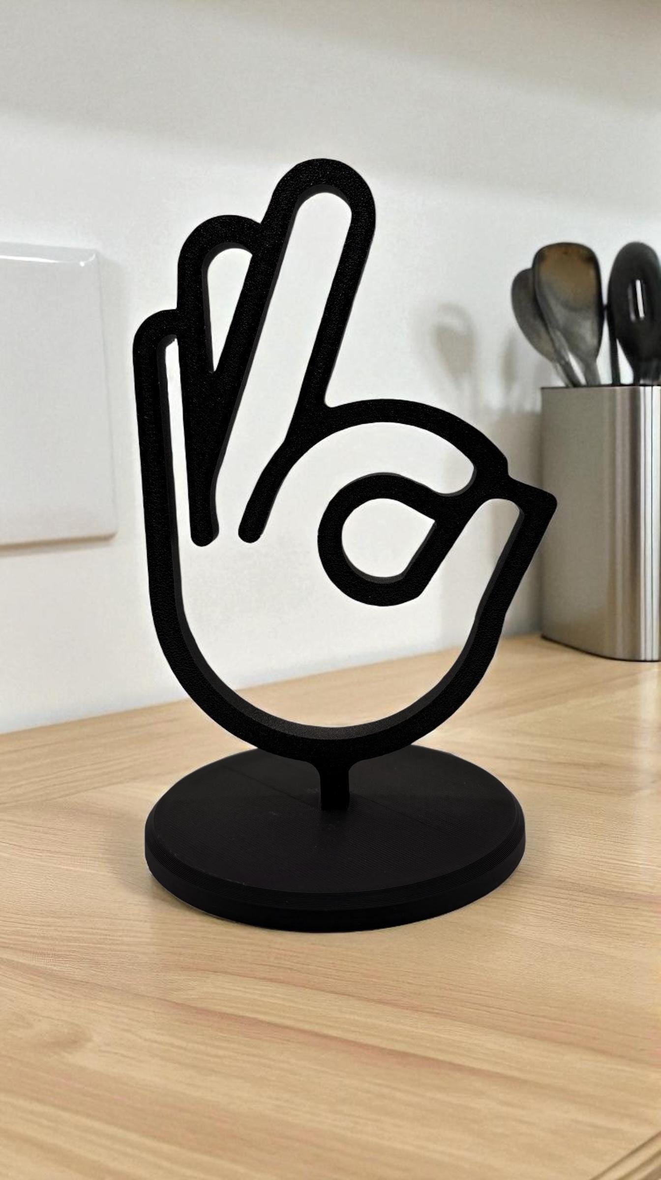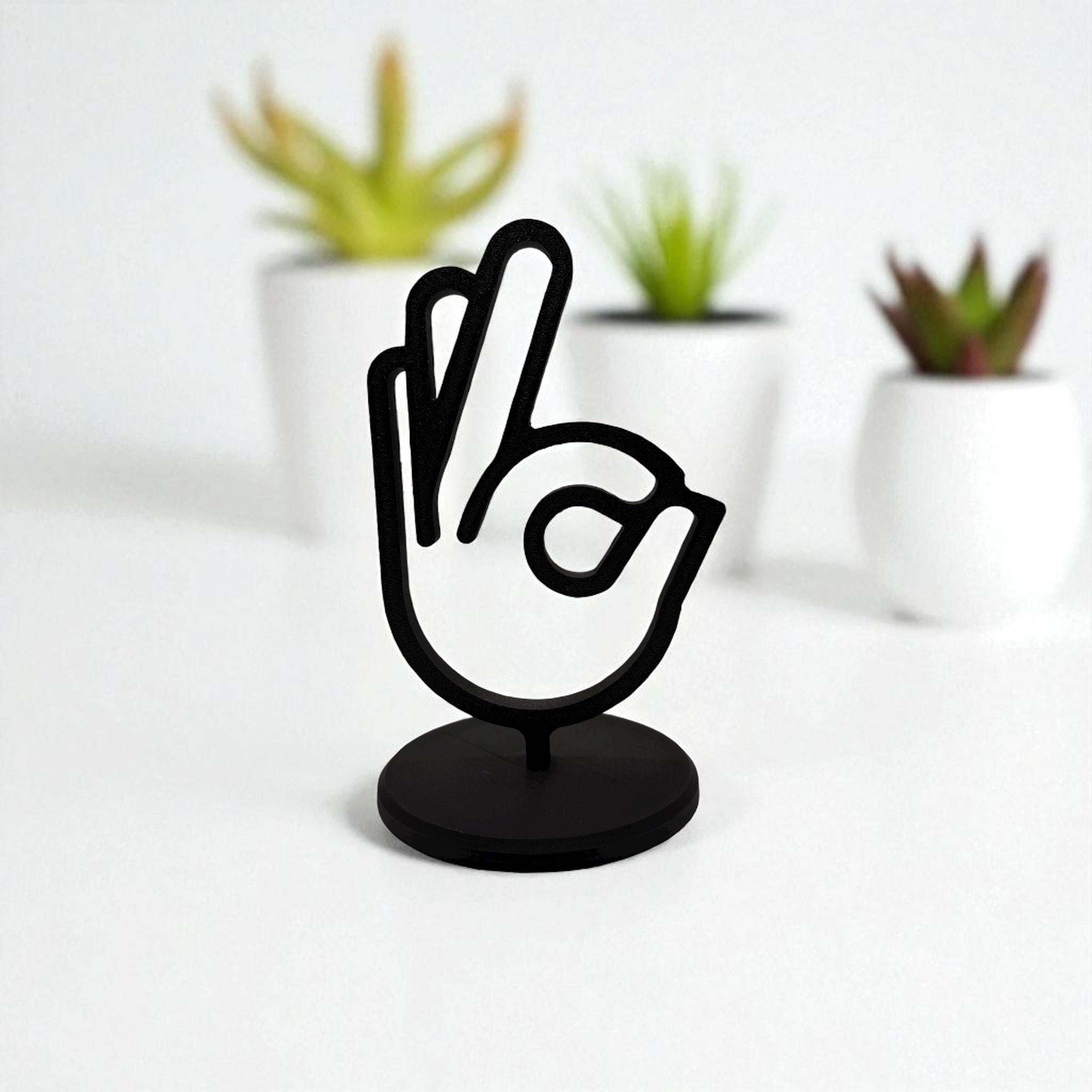 Verleihen Sie Ihrem Raum einen Hauch von Stil und Positivität mit unserem eleganten, 3D-gedruckten Handzeichen, das den beliebten "Alles in Ordnung"-Gruß darstellt! Dieses einzigartige Dekorationsstück ist nicht nur ein echter Hingucker, sondern auch ein wunderbarer Ausdruck von Optimismus und guter Laune.