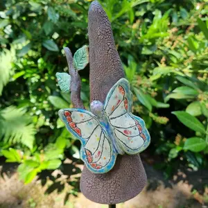 Большой цветок с парящей стрекозой из глины/керамики. Ванна от насекомых и птиц.
