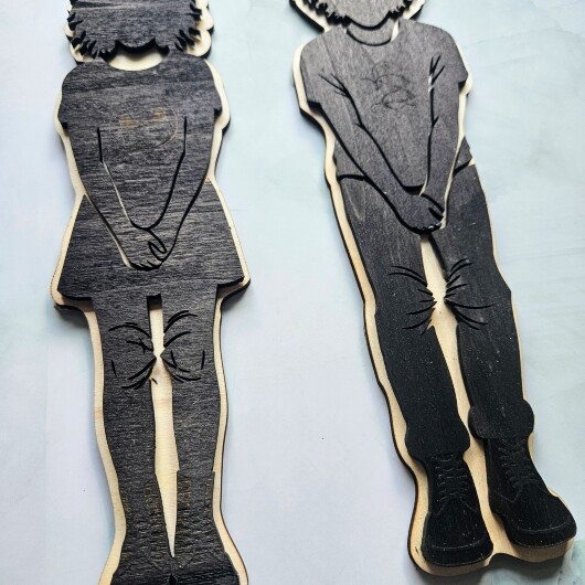 Die Schilder zeigen zwei stilisierte Figuren in der typischen Pose, die jeder sofort versteht. So finden sich Gäste in deiner Wohnung intuitiv zurecht, während das Design nahtlos an den Gothic- und Dark Wave-Lifestyle anknüpft. Es ist die ideale Art, Funktionalität mit der eigenen Subkultur zu verbinden.