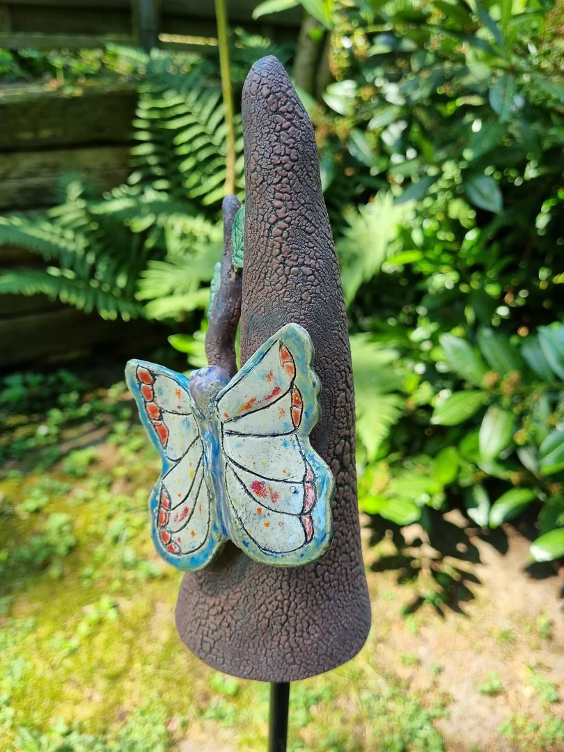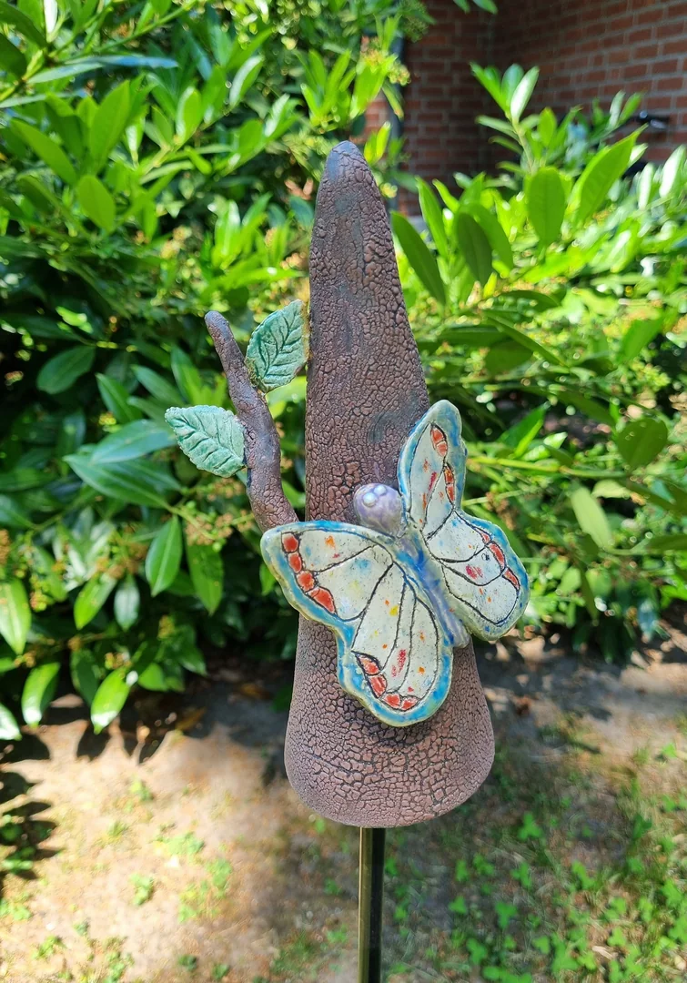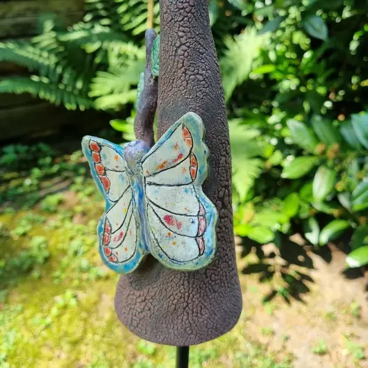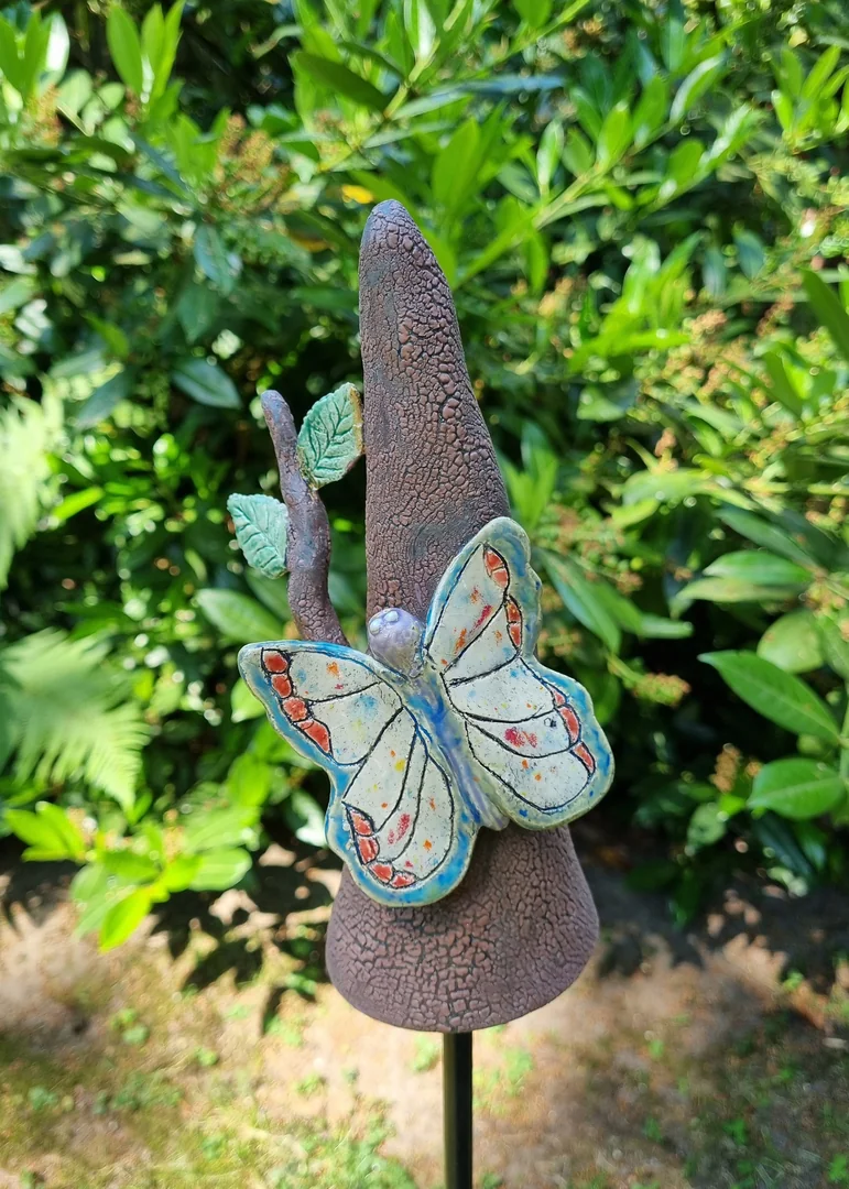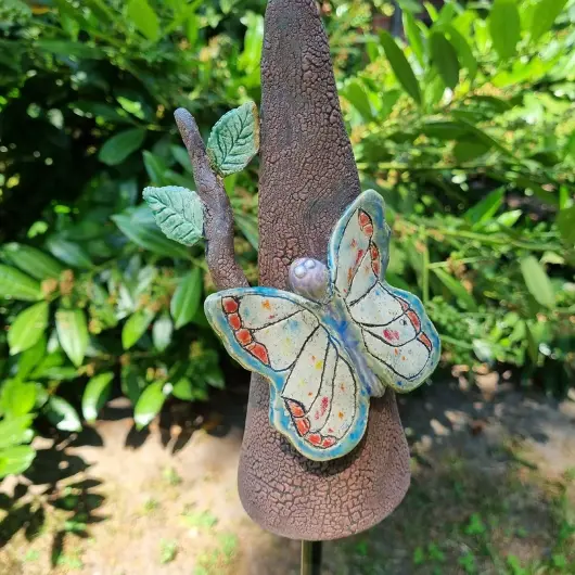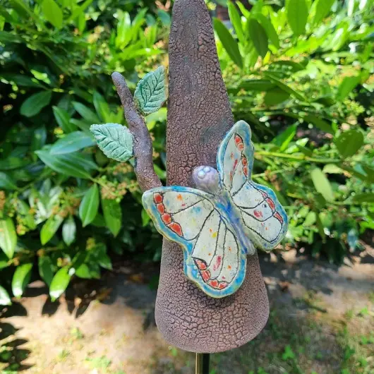 Бабочка на ветке с веткой с листьями. Для сидения на корточках на заборах или столбах или в качестве декоративного объекта в доме и саду.