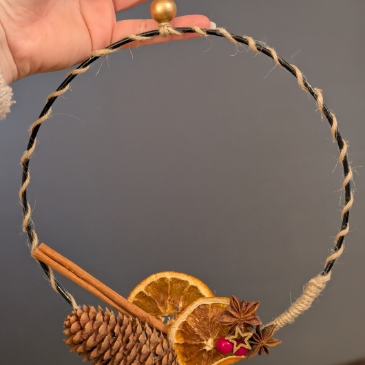 Jeder Deko-Ring wird von mir mit ganz viel Liebe und Geduld handgefertigt. Er kombiniert den modernen, schwarzen Metallrahmen mit Schätzen aus der Natur.