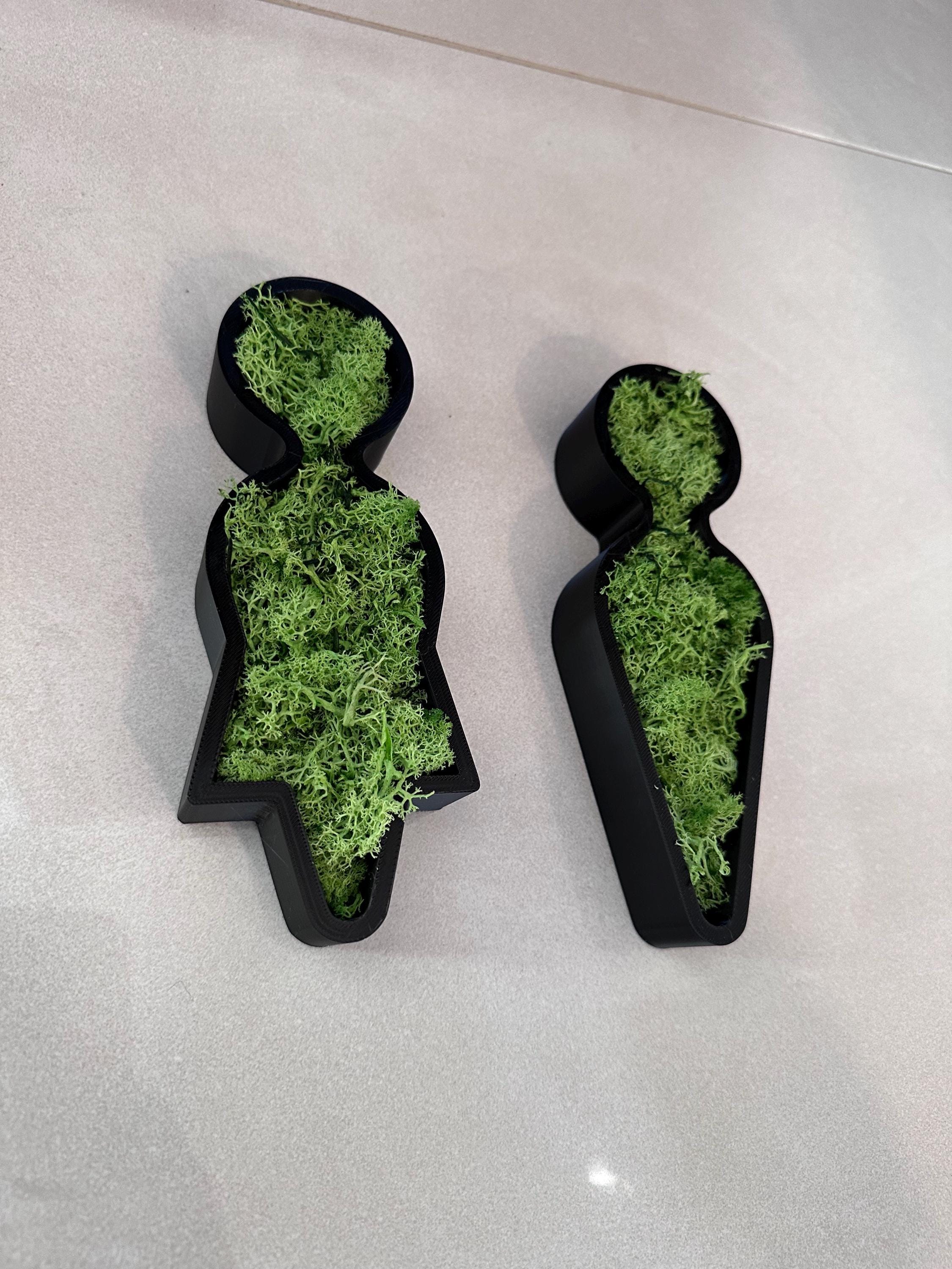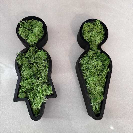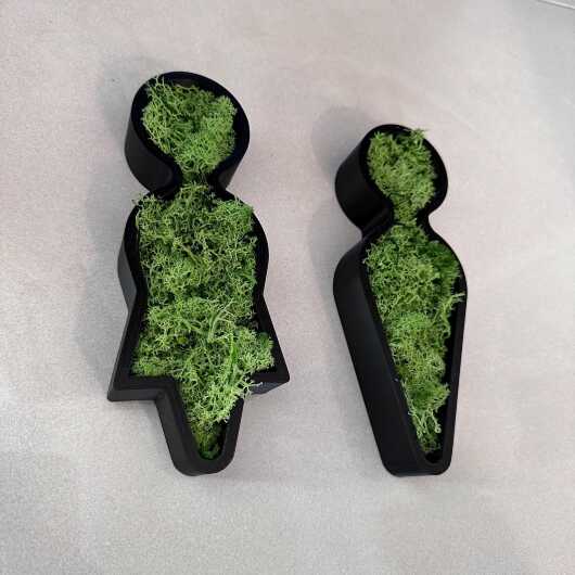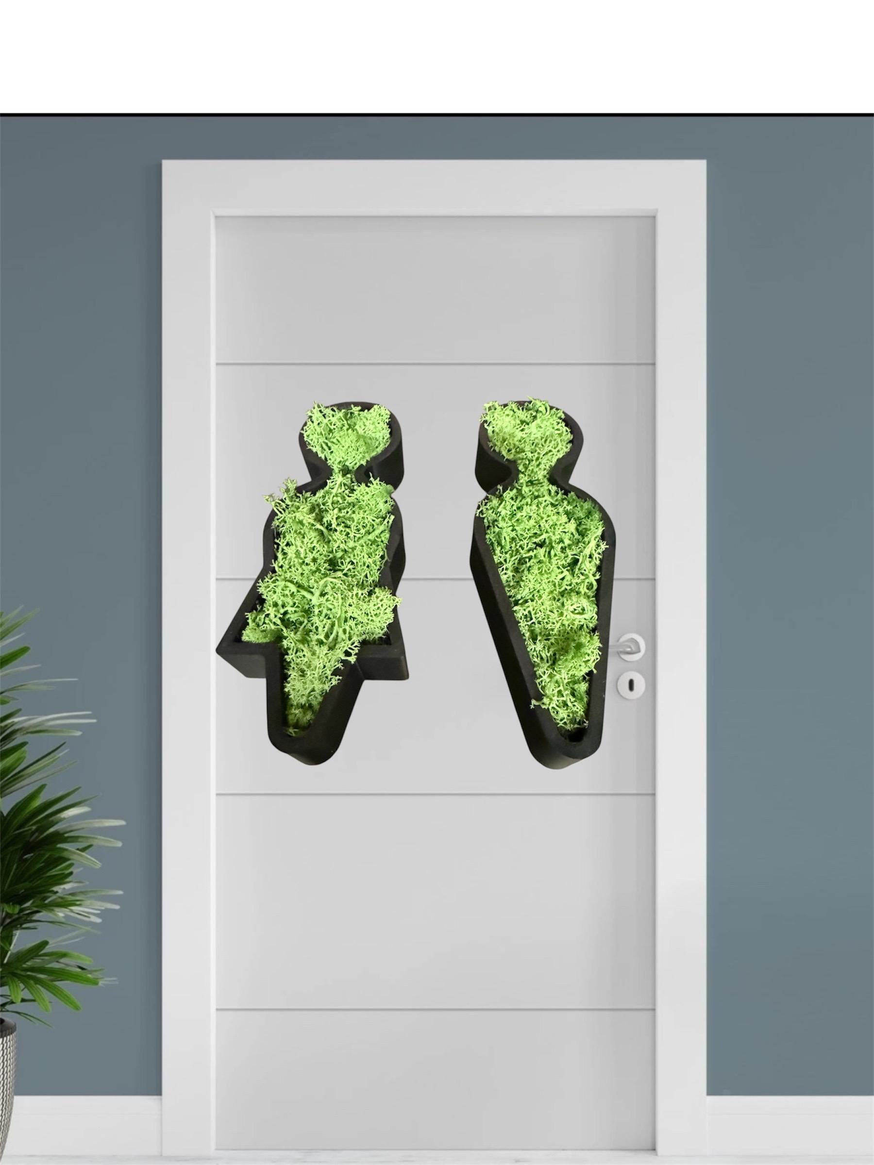 Diese einzigartigen WC Türschilder für Damen & Herren sind die perfekte Kombination aus modernem Design und natürlicher Dekoration. Die Symbole wurden per 3D-Druck hergestellt und anschließend mit echtem, konserviertem Islandmoos befüllt. So entstehen außergewöhnliche Toiletten Zeichen, die nicht nur funktional, sondern auch dekorativ sind.