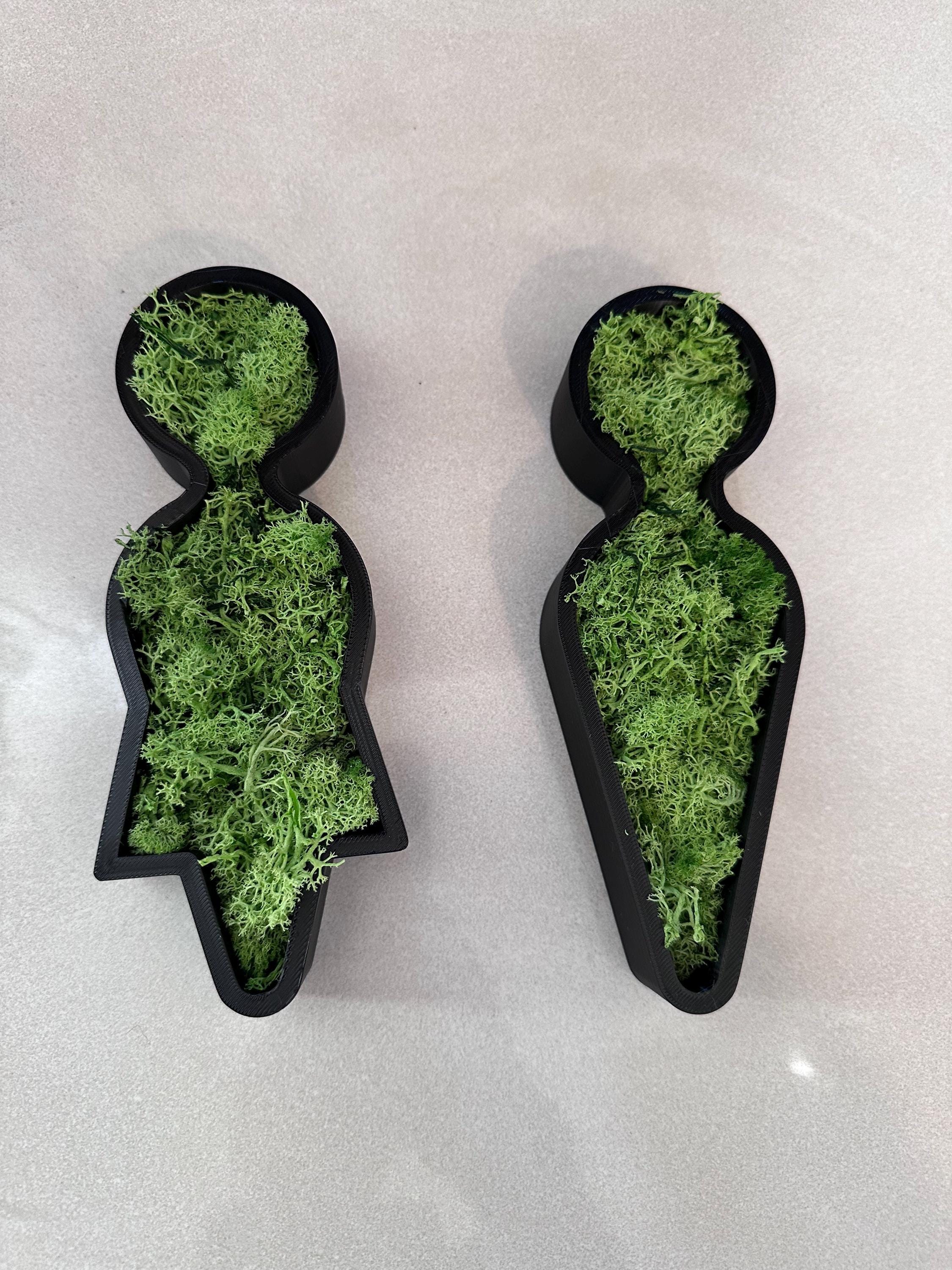 3D Druck WC Türschilder Frau & Mann mit Islandmoos – Toiletten Schilder modern, Moos Deko, WC Zeichen