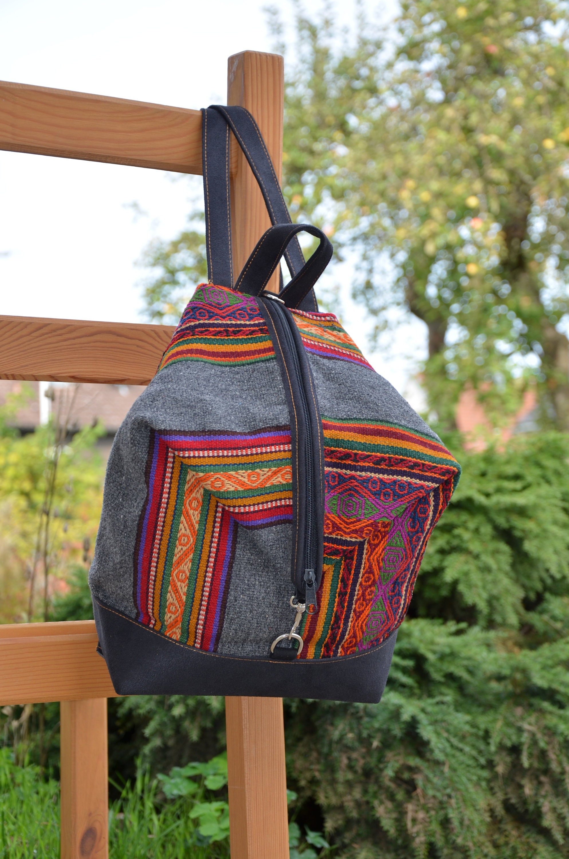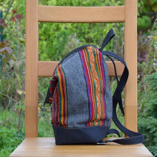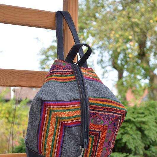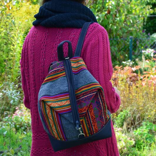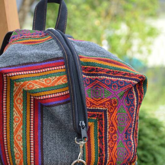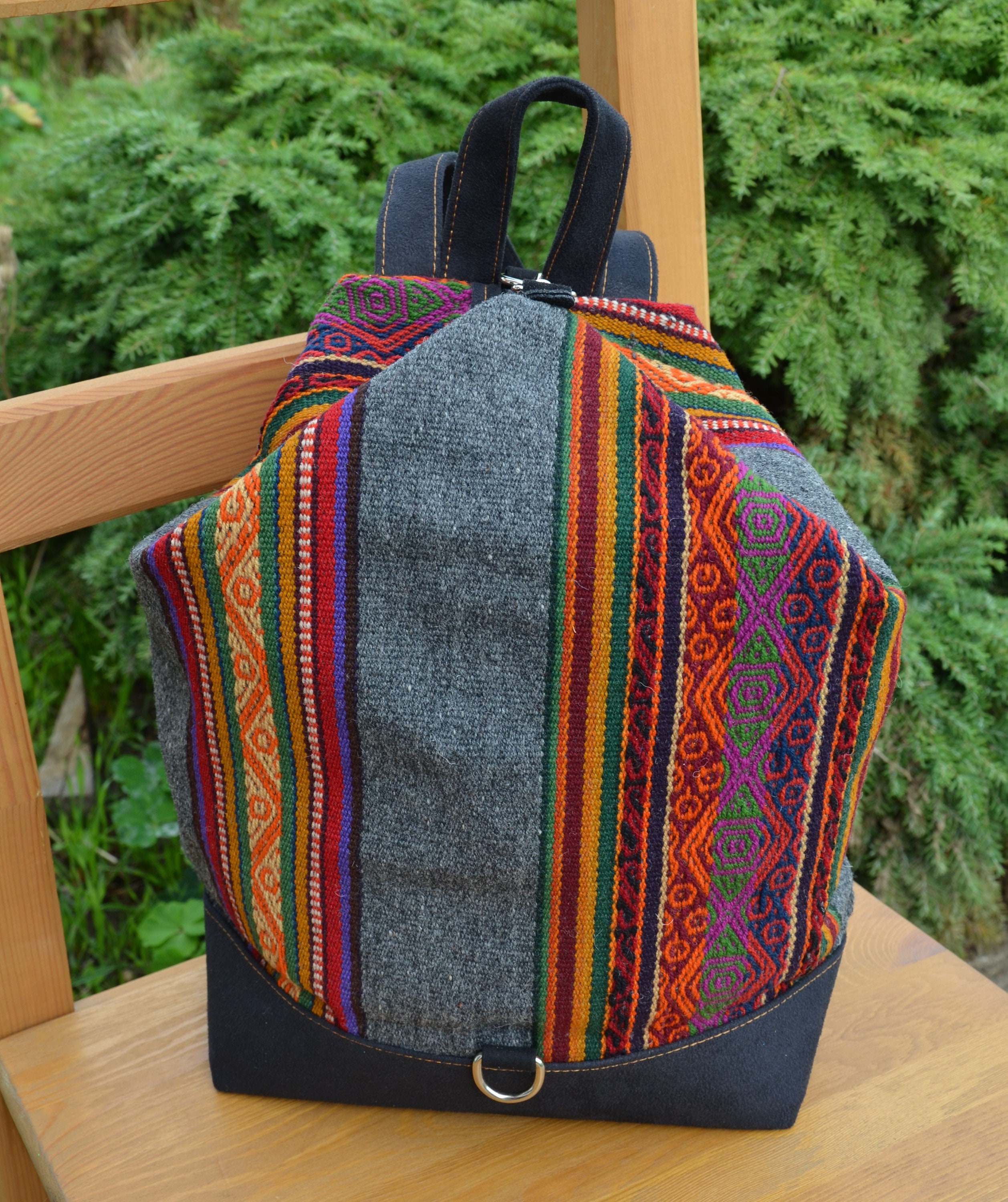Наши уникальные рюкзаки изготовлены вручную в Перу и являются результатом элегантного сочетания простой искусственной замши и натурально окрашенной и сотканной вручную овечьей шерсти из региона Куско, также известного как Манта Кускенья. Веселое пламя красок отражает традиционное текстильное искусство Андского региона, а также перуанскую радость жизни!