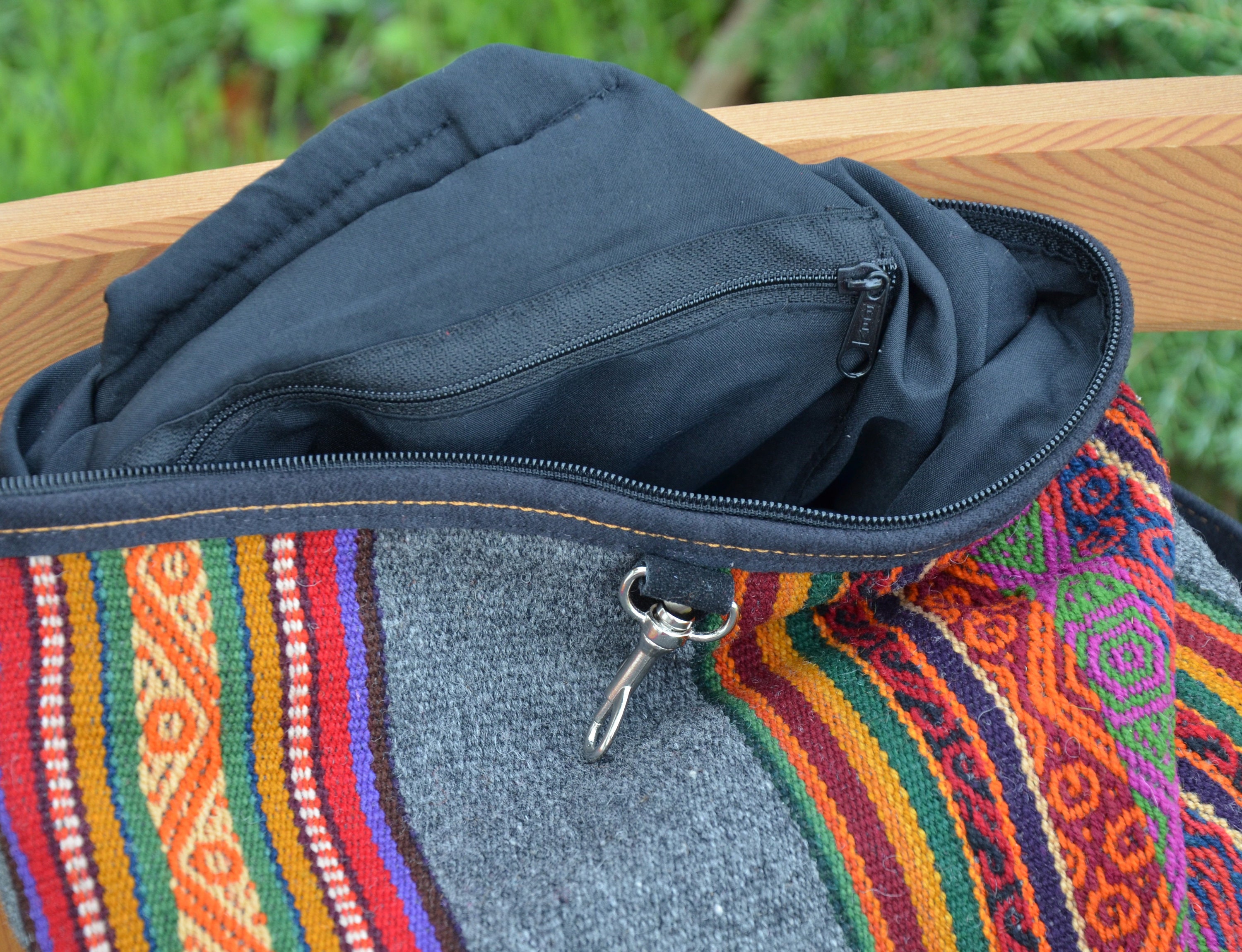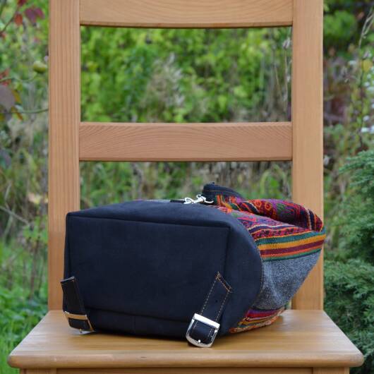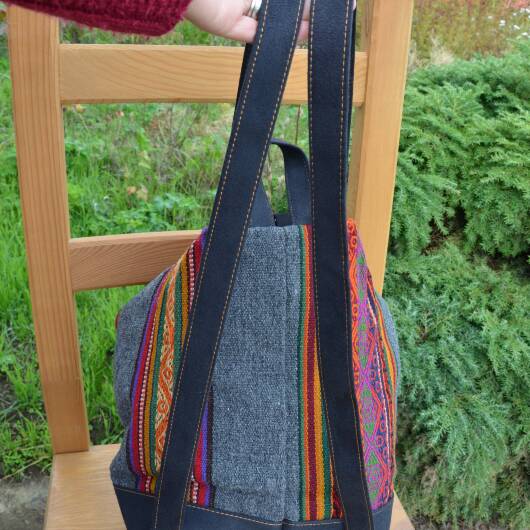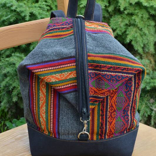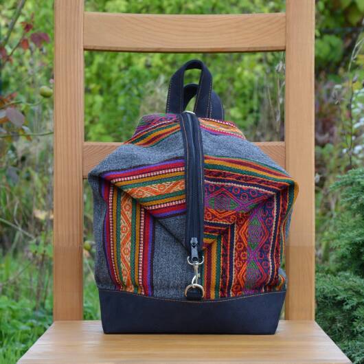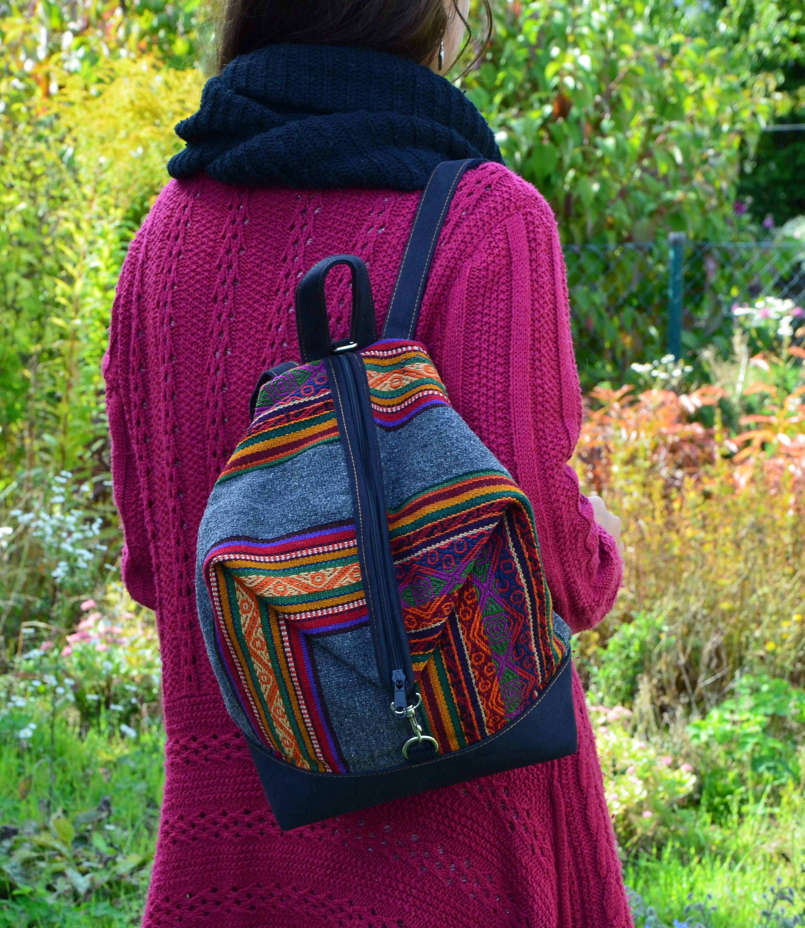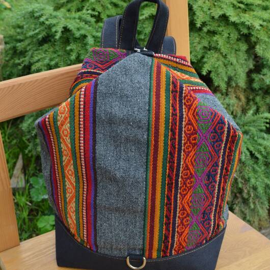 Наши уникальные рюкзаки изготовлены вручную в Перу и являются результатом элегантного сочетания простой искусственной замши и натурально окрашенной и сотканной вручную овечьей шерсти из региона Куско, также известного как Манта Кускенья. Веселое пламя красок отражает традиционное текстильное искусство Андского региона, а также перуанскую радость жизни!