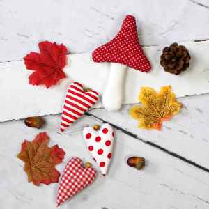 Осенняя тканевая гирлянда с грибами и сердечками – особое осеннее украшение в стиле загородного дома