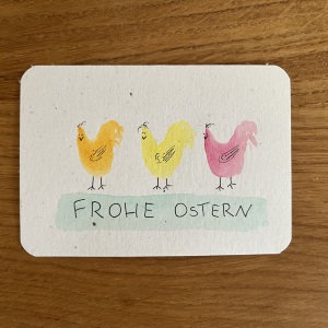 Kleiner farbenfroher Ostergruß, perfekt fürs Osternest oder ein schönes Blumengesteck. Die Karte ist im DIN A7 Format, mit abgerundeten Ecken. Jede Karte ist handgemalt, daher kann es zu Abweichungen kommen!