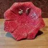 Крупный цветок, красный с маленькими зайчиками, выполнен из глины/керамики. Ванна от насекомых и птиц.